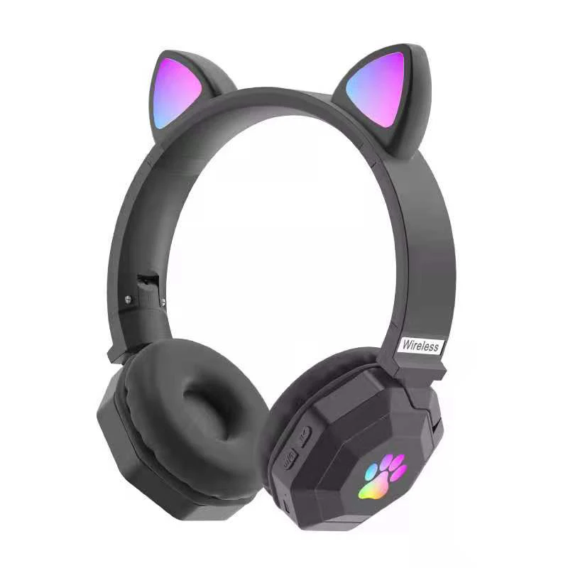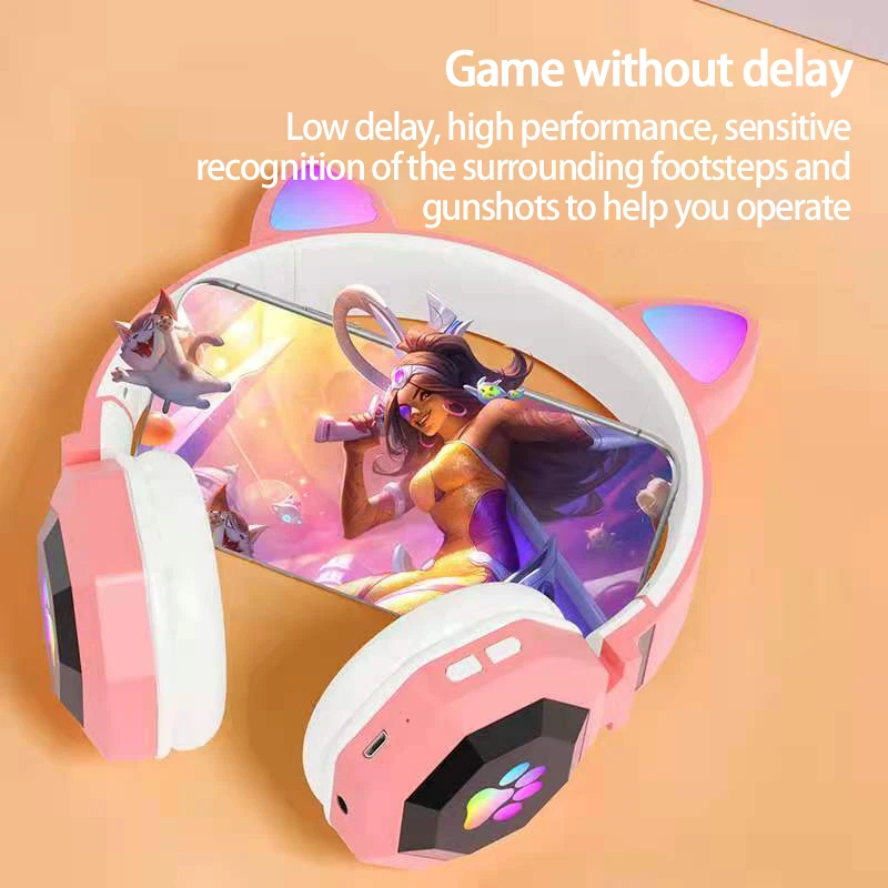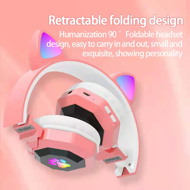 Новинка 2021, беспроводная гарнитура Bluetooth 5,0 с креплением на голову, Симпатичные Светящиеся кошачьи ушки, музыкальные спортивные Игровые наушники с микрофоном