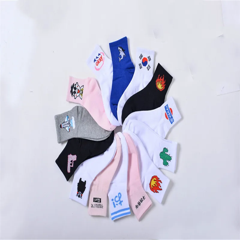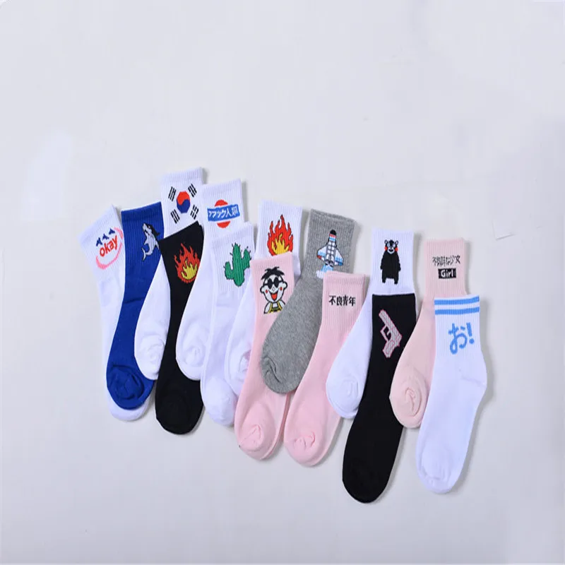 Летние женские короткие носки, корейские японские хлопковые носки Харадзюку с принтом пламени, забавные женские носки кактусовый пистолет для девочек