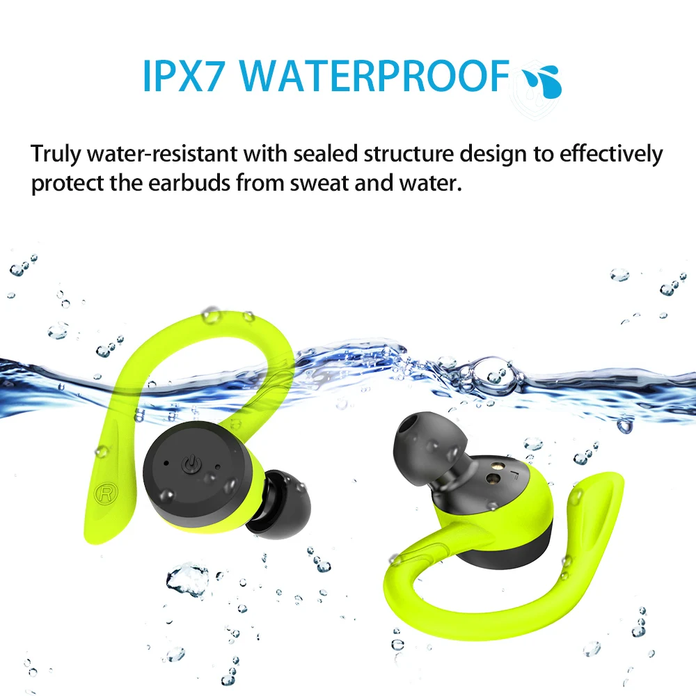 Поставляется с аккумулятором емкостью 650 мАч, который вы можете заряжать его много раз. Наслаждайтесь музыкой в парке по выходным и где угодно. Благодаря водонепроницаемости IPX7 ваши наушники защищены от пота, воды, дождя и т. д. Воспроизводите музыку во время тренировки. Примечание: чехол не является водонепроницаемым.