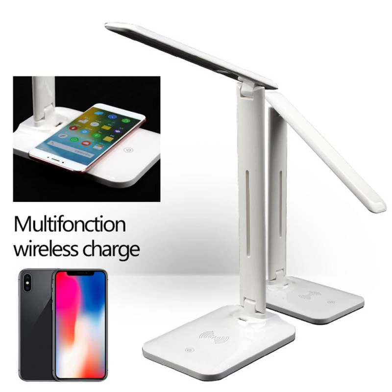 Умная Светодиодная настольная лампа с беспроводной зарядкой, складной многофункциональный светильник для чтения с сенсорным управлением и защитой глаз