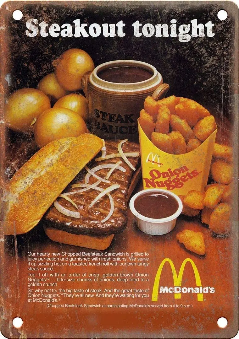 McDonalds луковые самородки винтажные Ad 12 "X 9" репродукция металлический знак N488