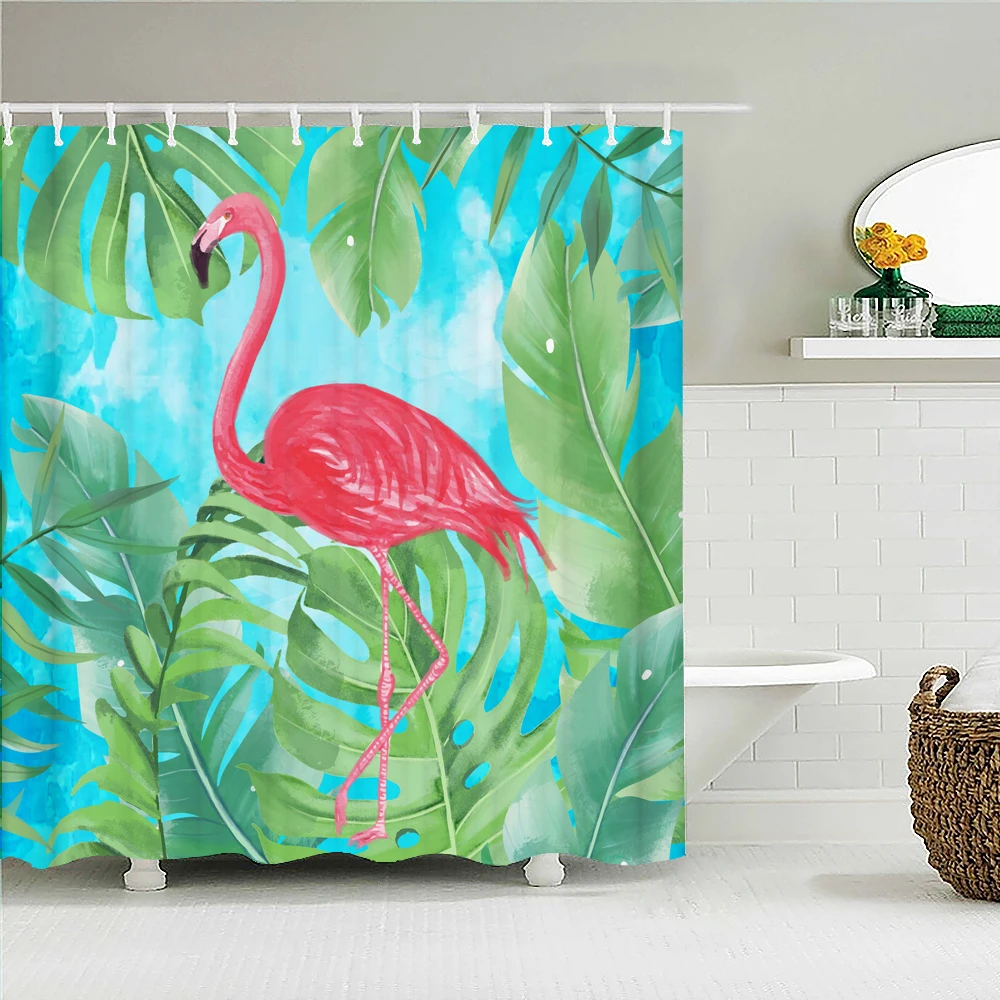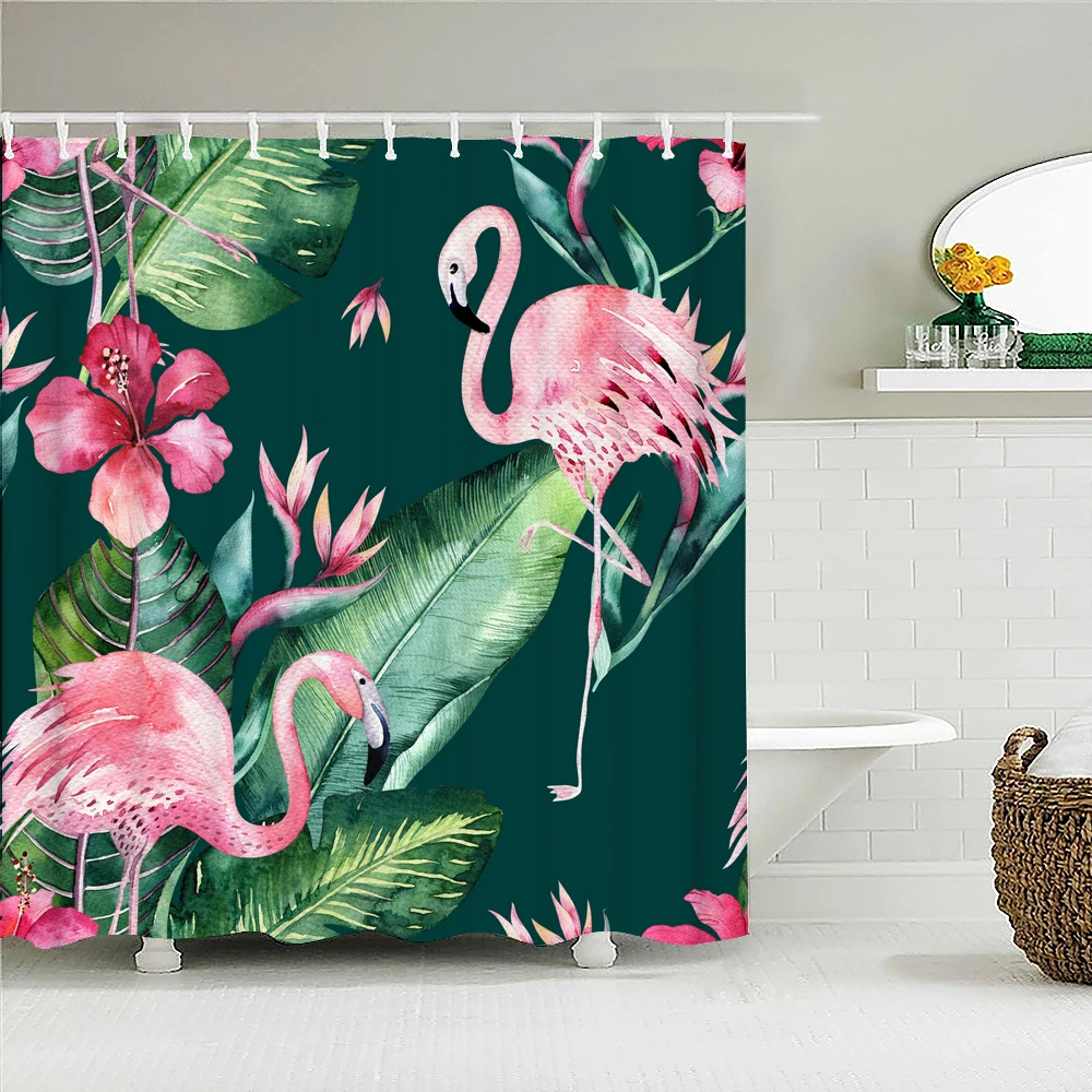 Фламинго розовые птицы занавески для душа ванная комната водонепроницаемые полиэфирные Цветы Листья 3D печать экран для ванной занавески для душа s