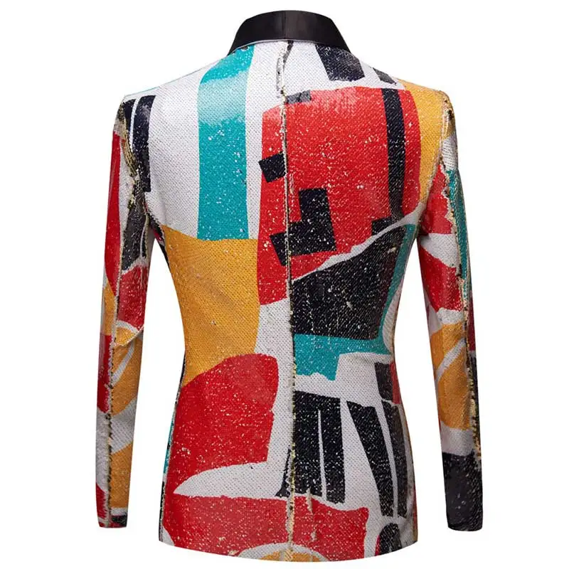 Стильный костюм с пайетками и геометрическим узором, мужской пиджак с воротником-шалью на одной пуговице, смокинг, мужские вечерние блейзеры, Свадебный костюм для певицы, Homme