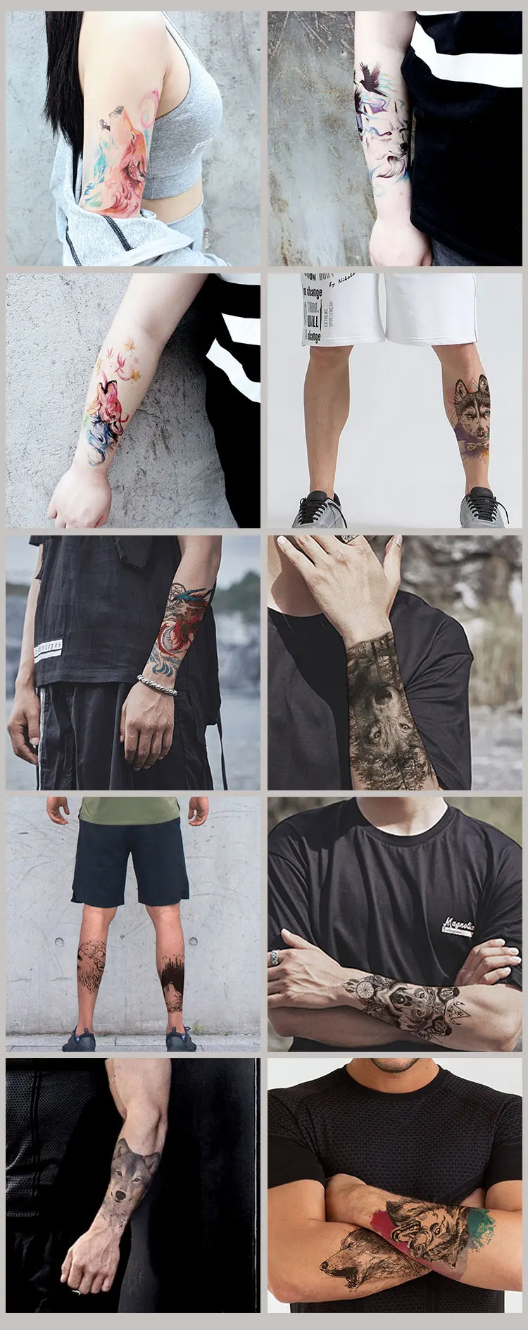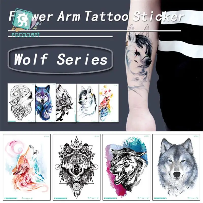 Личность властный волк головка для боди-арта Водонепроницаемый переводятся с помощью воды, временная татуировка Стикеры для Для женщин Мужчины руки поддельные татуировки