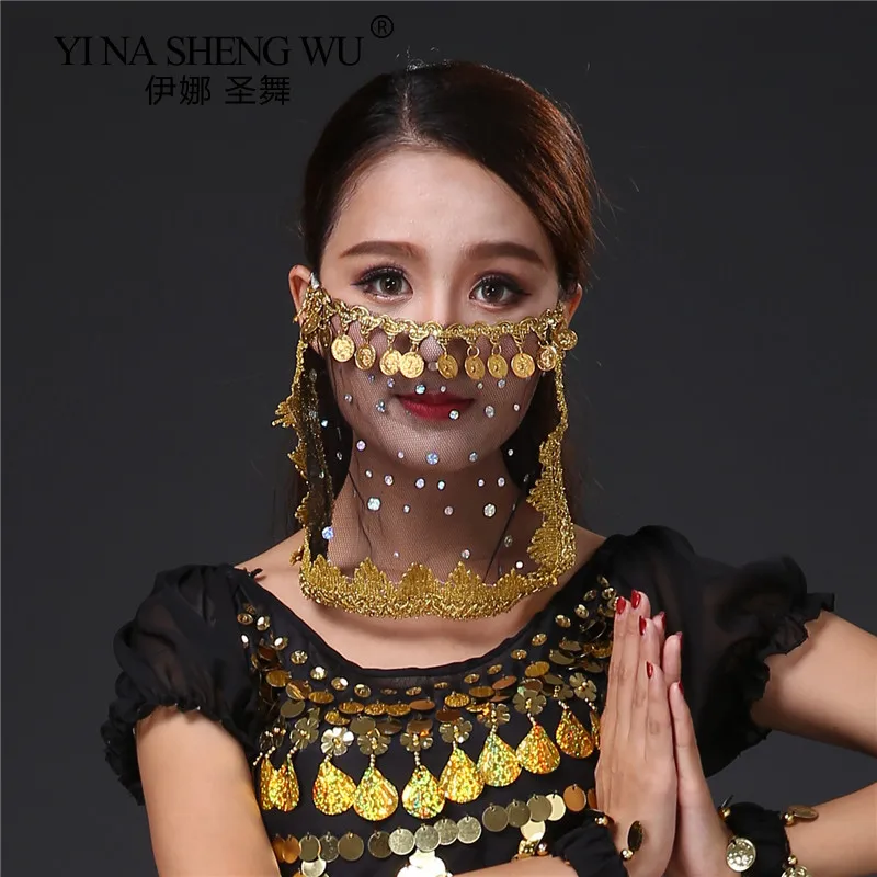 Новый танец живота вуаль для индийских танцев монета подчеркивания лица вуаль Для женщин танца живота практики Производительность Аксессуары Уход за кожей лица вуаль 8 цветов