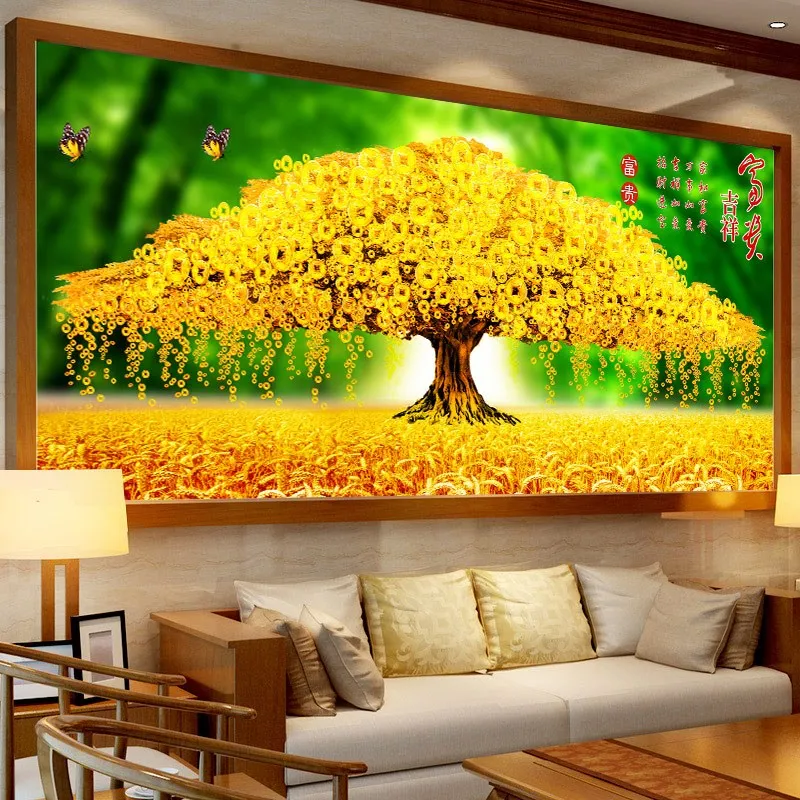 Алмазная вышивка AB, украшение для дома, настенный арт, наборы для вышивки крестиком, мозаика с полным наполнением, золотое дерево, новинка