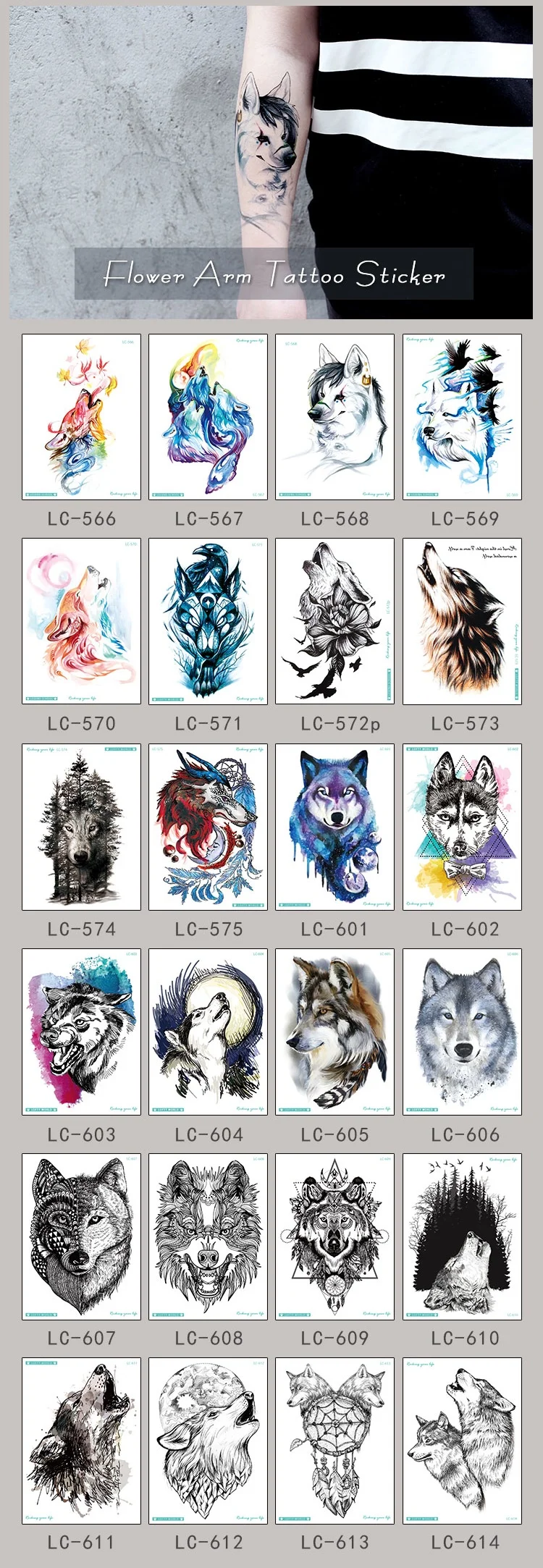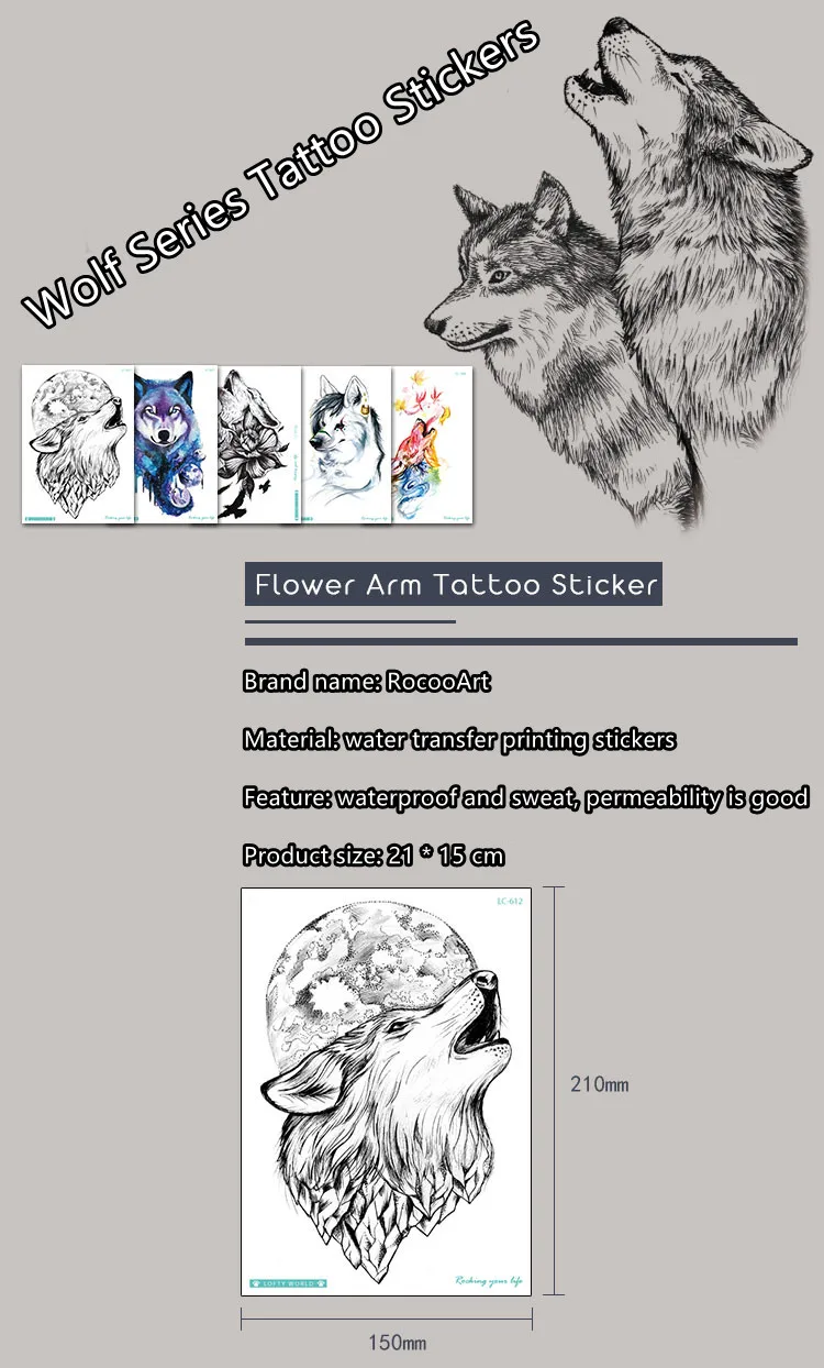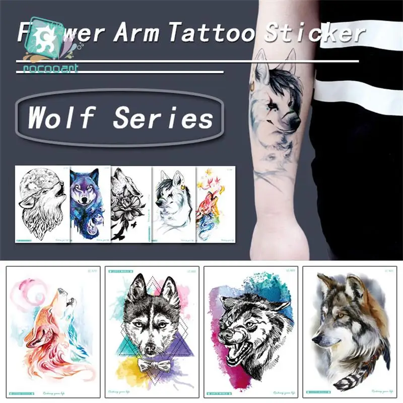 Личность властный волк головы Arm для боди-арта Водонепроницаемый временная татуировка Стикеры для Для женщин мужчин переводятся с помощью воды, поддельные татуировки