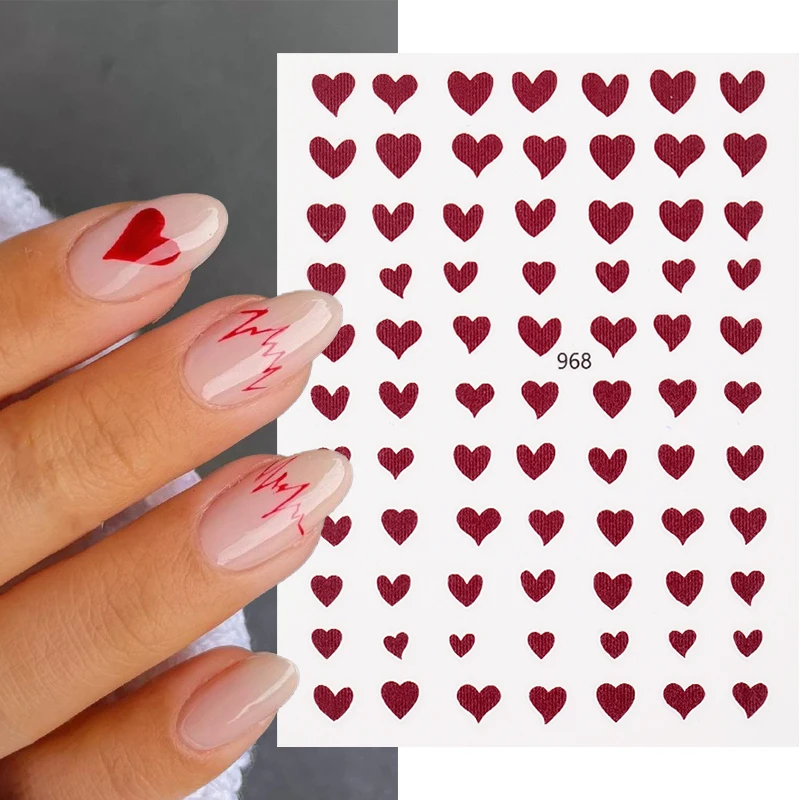 1 лист 3D наклейки для ногтей красное сердце любовь самоклеящиеся слайдеры бумажные летние листья переводные наклейки s наклейки для ногтевого дизайна наклейки для маникюра
