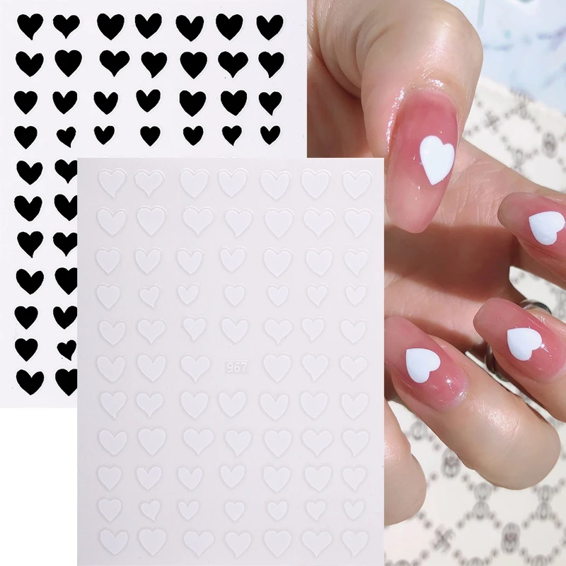 3D наклейки для ногтей, 1 лист, черное сердце, любовь, самоклеющиес...