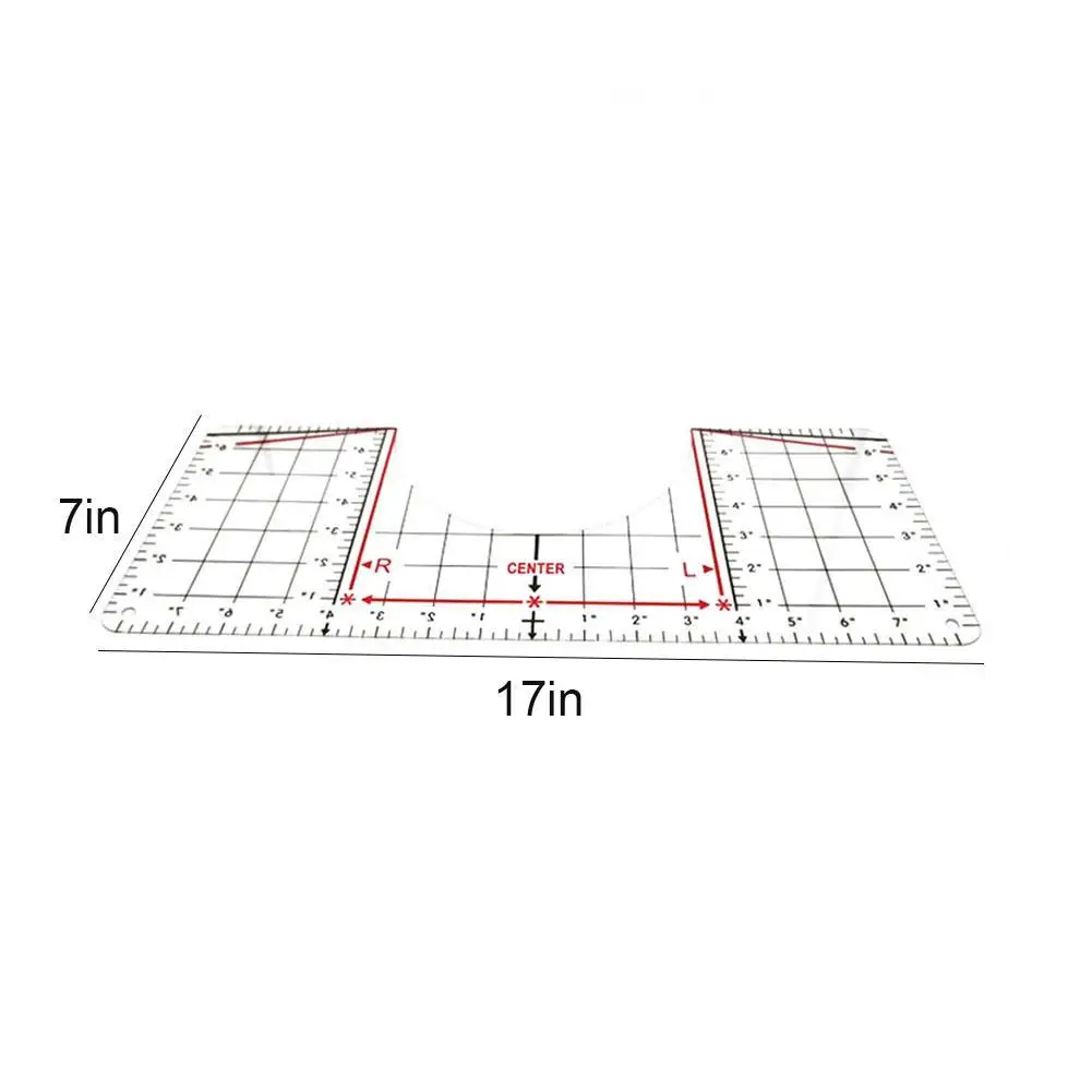 Футболка, направляющая линейка, круглая горловина, калибровочный инструмент, швейная линейка, центрирующий инструмент, линейкаХарактеристика:1. Линейка всех размеров: Экстра большая линейка для футболок, гид по выравниванию винила обеспечивает максимальную гибкость, вы можете выровнять винил для всех взрослых размеров (S / M / L / XL / XXL) и различных типов рубашек.2. Двусторонняя практичность: двусторонний инструмент для выравнивания футболки имеет двустороннюю удобство использования, обеспечивая максимальный контрастный цвет на светильник и темные цветные фоны для футболок.3. Специальные направляющие и линии сетки: шаблон плеча и дополнительные линии сетки позволяют линейке футболки быстро и точно обрабатывать дизайн каждый раз. Идеальный измерительный инструмент для сублимации винилового и теплового пресса.4. Высокое качество и отличное качество изготовления: направляющая для линейки футболок изготовлена из высококачественного литого акрила, закругленных углов, полированных краев и двухслойного УФ-покрытия.Спецификация:Материал: ПВХРазмер изделия: 17 * и 7 дюймов, вес 75 граммПосылка:1 * линейка