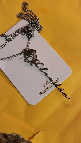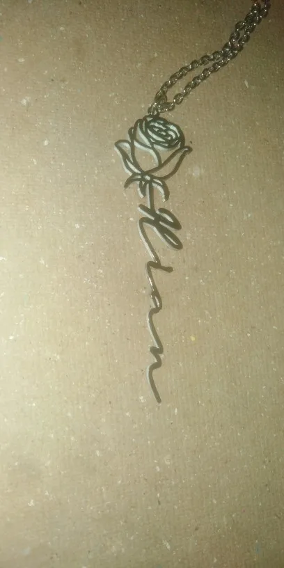 Если вы не уверены в покупке этого ожерелья, поверьте мне, это мило, тем не менее, шрифт выглядит очень незаметным и грязным, и его также очень сложно правильно прочитать ваше имя, но в целом он красивый