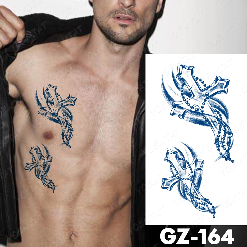 Тату временные женские татуировки, боди-арт прочного Водонепроницаемый временная татуировка Стикеры Poker Skull Clock тату для рук поддельные из розового золота Крест татуировки золотого и серебряного Для мужчин
