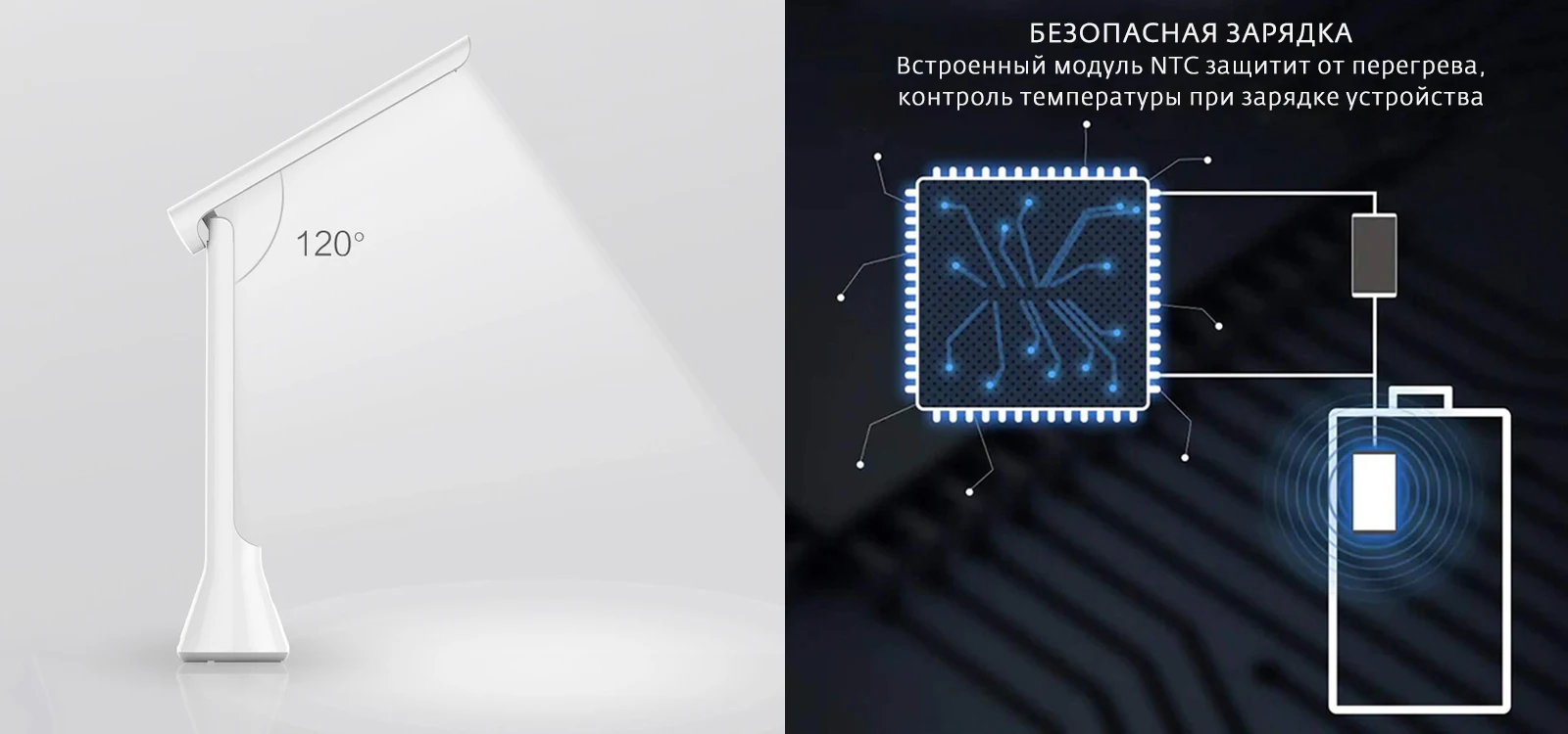 Трансформация света - в одно касание. Yeelight Folding Desk Lamp – беспроводная лампа, которая создает комфорт. Верхняя часть, которая может «изогнуться» на 120°, три режима работы, настройка баланса цветовой температуры и яркости – все эти функции максимально позаботятся о ваших глазах.