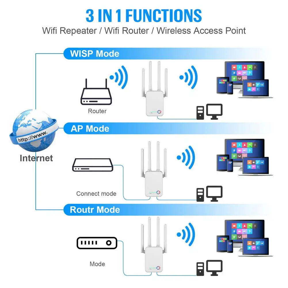 Dual Band 1200 Мбитс Wifi расширитель диапазона Беспроводной повторитель сигнала 2,4G5,8G Wi-Fi усилитель сигнала Wi-Fi точка доступа