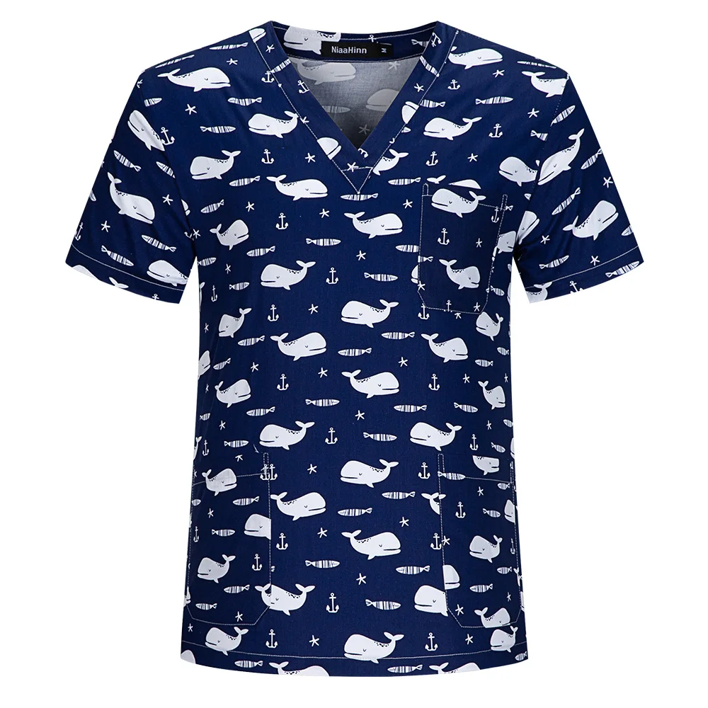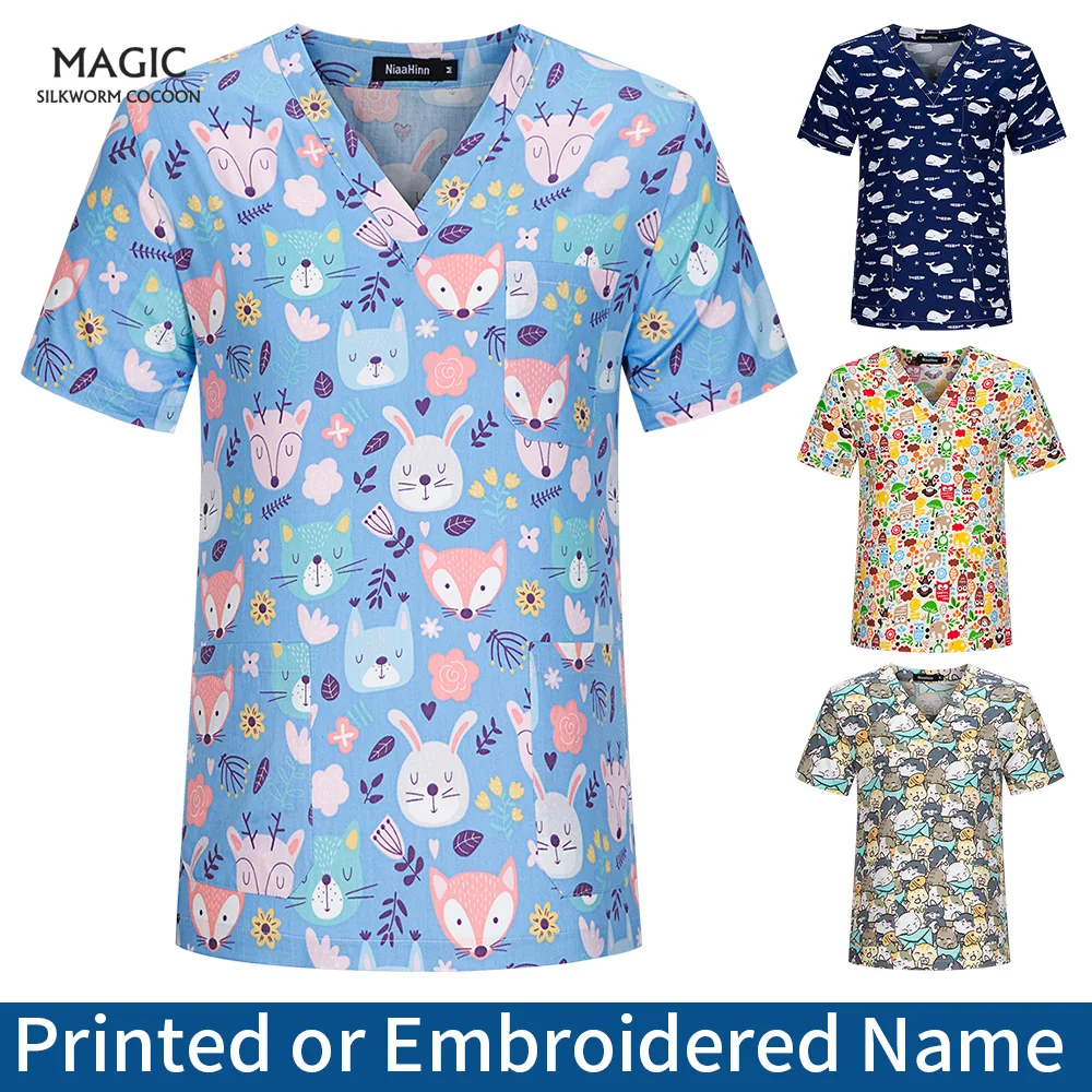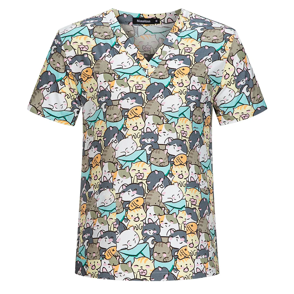 Топ с V-образным вырезом для питомцев, ветеринарный Топ для работы в клинике, скраб с принтом для кормления, униформа для салонов красоты хлопок, Аптечная Рабочая одежда