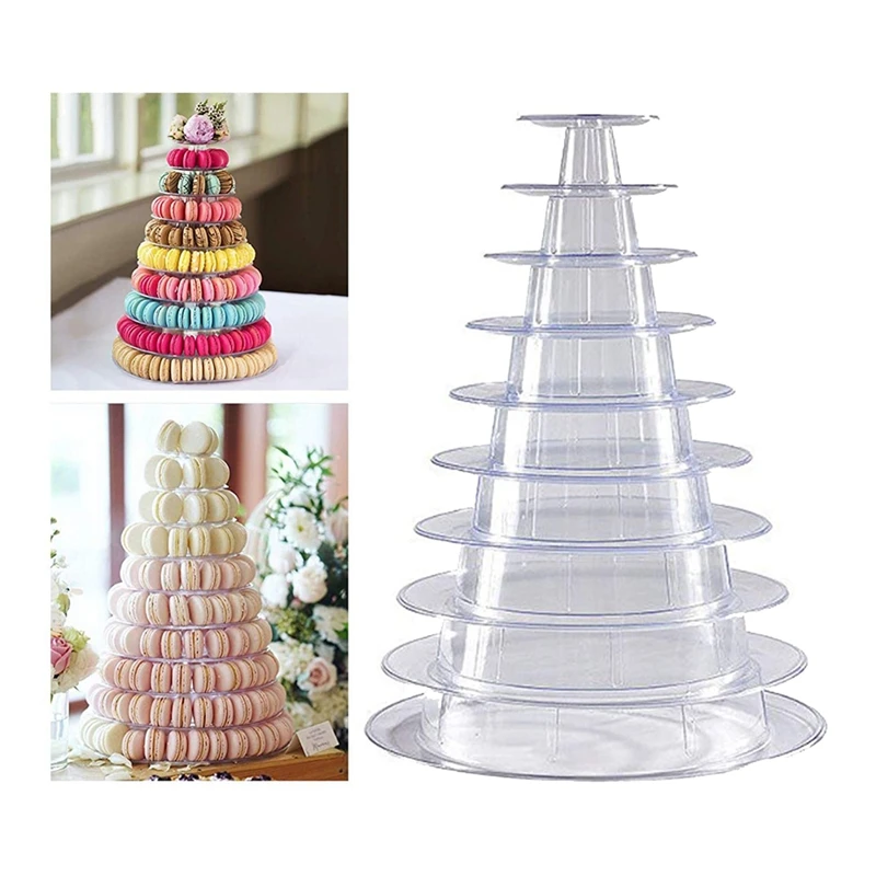 10 ярусов подставка для кексов, круглая башня для макарона, прозрачная витрина для торта, украшение для свадьбы, дня рождения