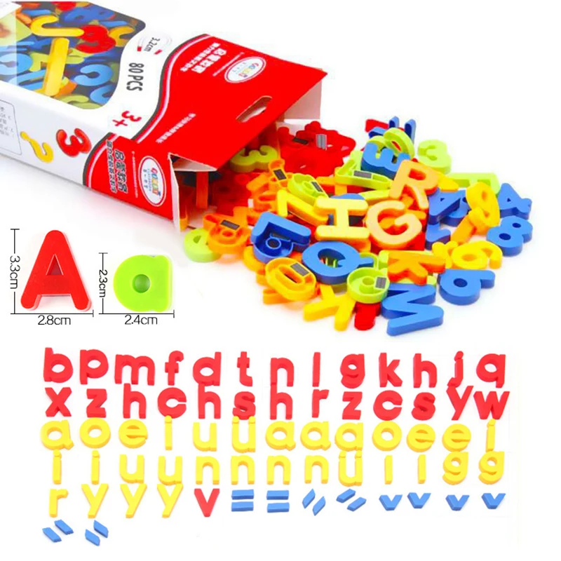 ★Введение продукта · Название продукта: детский магнитный алфавит обучающие игрушки с цифрами · Материал: пластик · Условия: Совершенно новый высококачественный, безопасный и нетоксичный · Подходит для детей старше 3 лет · Способ упаковки: оригинальная упаковка ★Продукт содержит: 45 шт. набор: надпись X 26 шт. + Цифровой X IOPCS + символ X 9 шт. 78 шт. комплект: верхний чехол с надписью X 26 шт. + нижний чехол etters X 26 шт. + цифровой символ X 26 шт. 80 шт. набор: буква x 52 шт. + символ цифры x 28 шт. ★Особенности · Магнитные наклейки с буквами, которые могут быть наклеены на железные поверхности, такие как холодильники · Количество букв, учебные пособия для раннего детского образования [Уведомления] ------- Если по какой-либо причине вы не довольны каким-либо продуктом, продаваемым в нашем магазине, пожалуйста, не стесняйтесь обращаться к нам, и мы сделаем все возможное, чтобы решить вашу проблему как можно скорее! ------ Пожалуйста, дайте нам больше поддержки, если вы удовлетворены нашей продукцией. ------- Желаю вам хорошего дня!