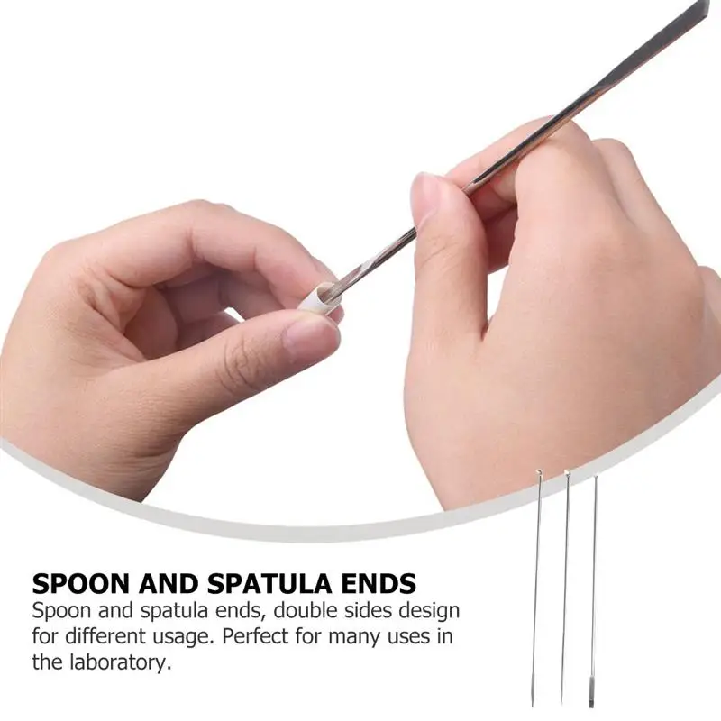 -Концы ложки и лопатки, двусторонняя конструкция для разного использования. Идеально подходит для многих лабораторных работ.