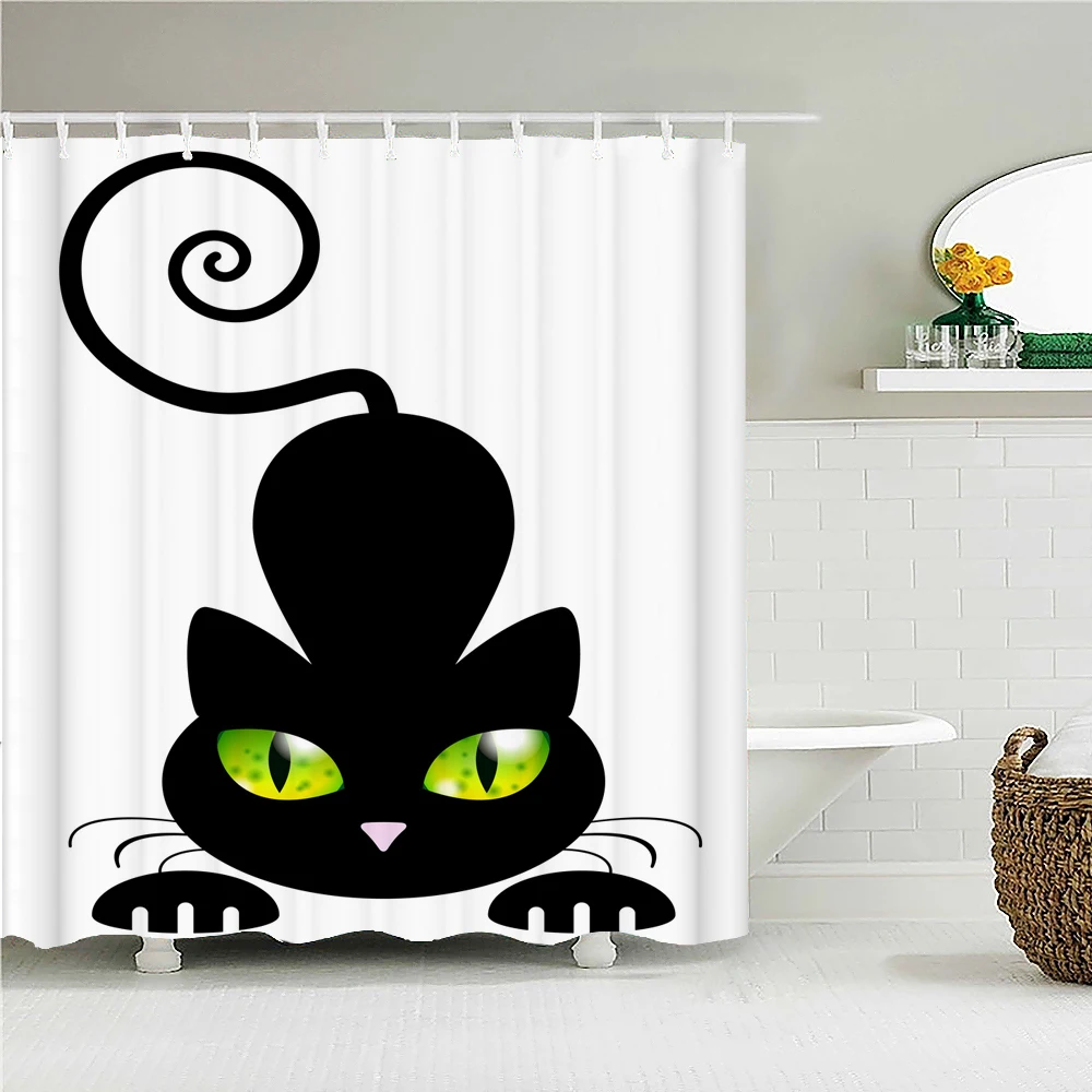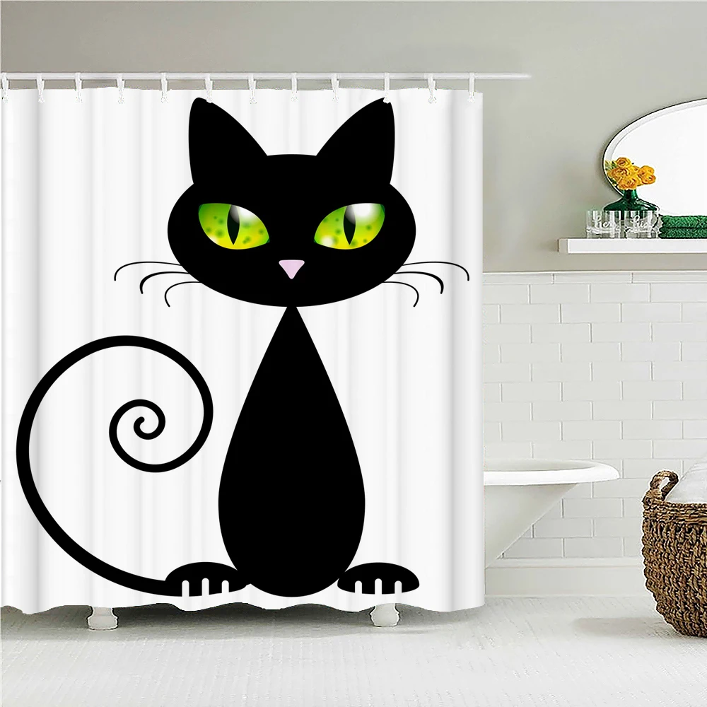 Забавная занавеска для душа с мультяшным черным котом, водонепроницаемая занавеска для ванной из полиэстера с 3D принтом, занавески для душа в ванную комнату с крючками