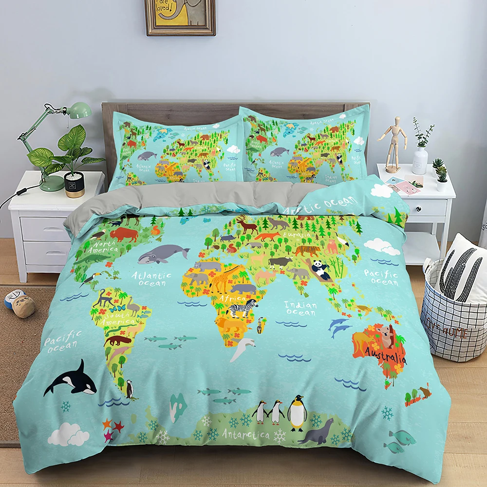 Комплект постельного белья с изображением животных из мультфильмов,...