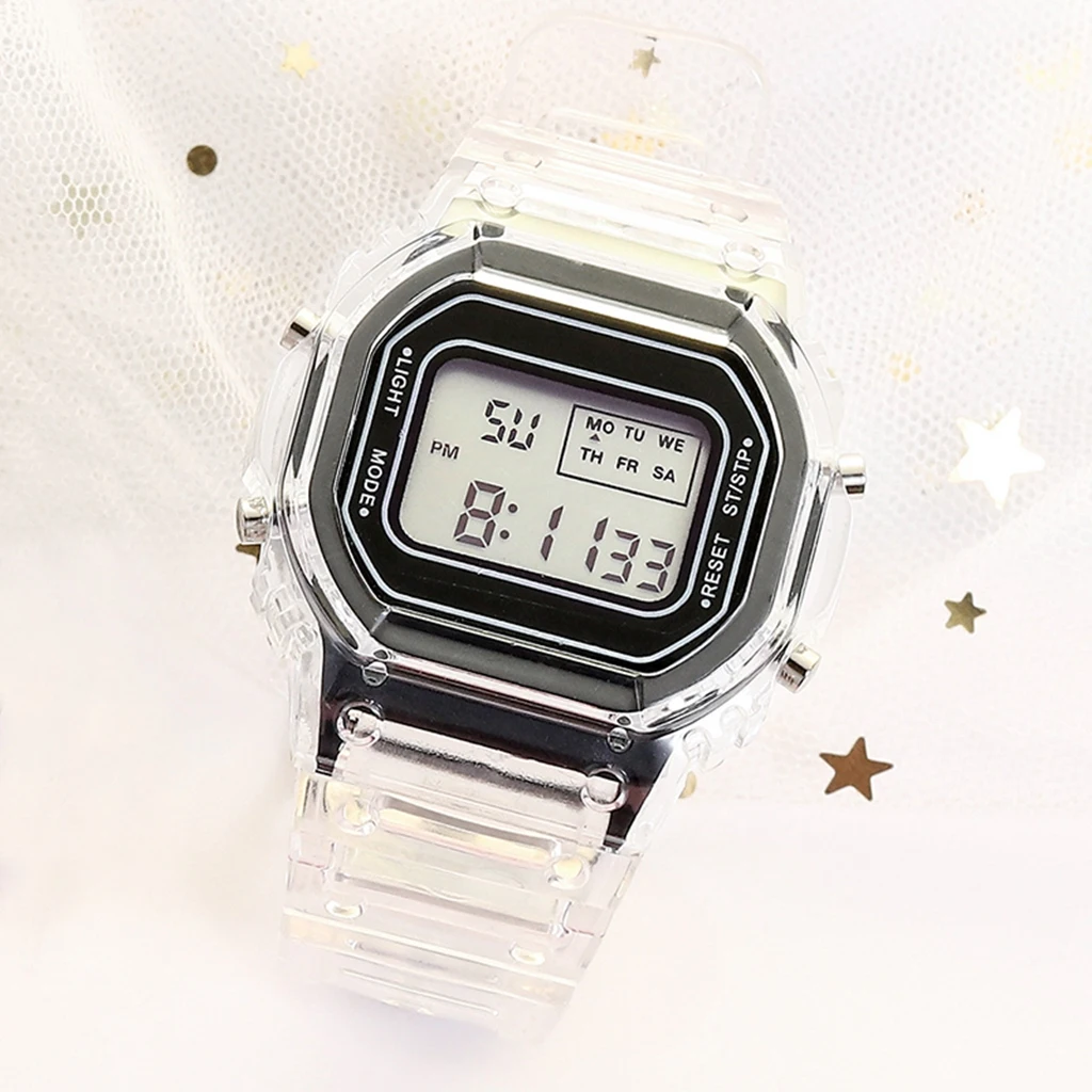 Прозрачные Цифровые светящиеся часы, модные женские студенческие сп...