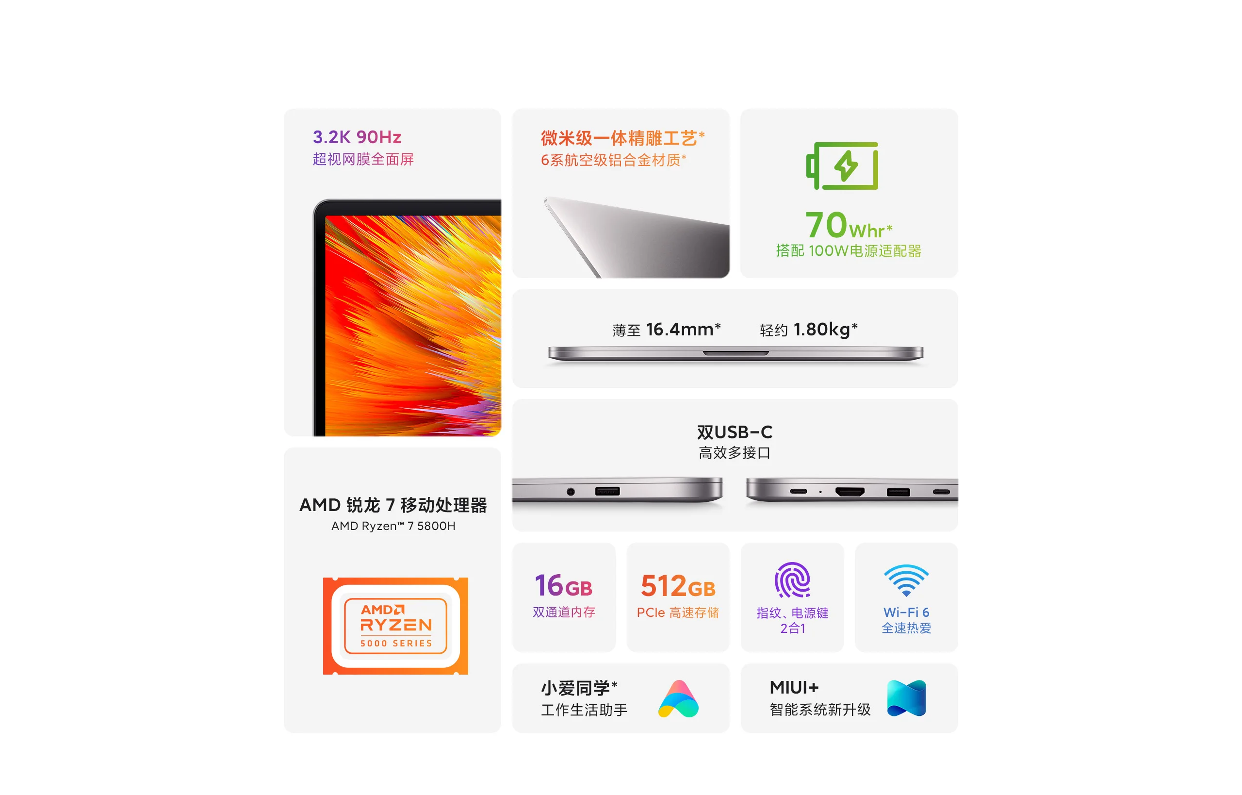 2021 Новый Xiaomi RedmiBook Pro 15 ноутбук Ryzen R7-5800H 16GB + 512GB SSD 15,6 inch 3,2 K экран Mi ноутбук Win 10 Pro PC