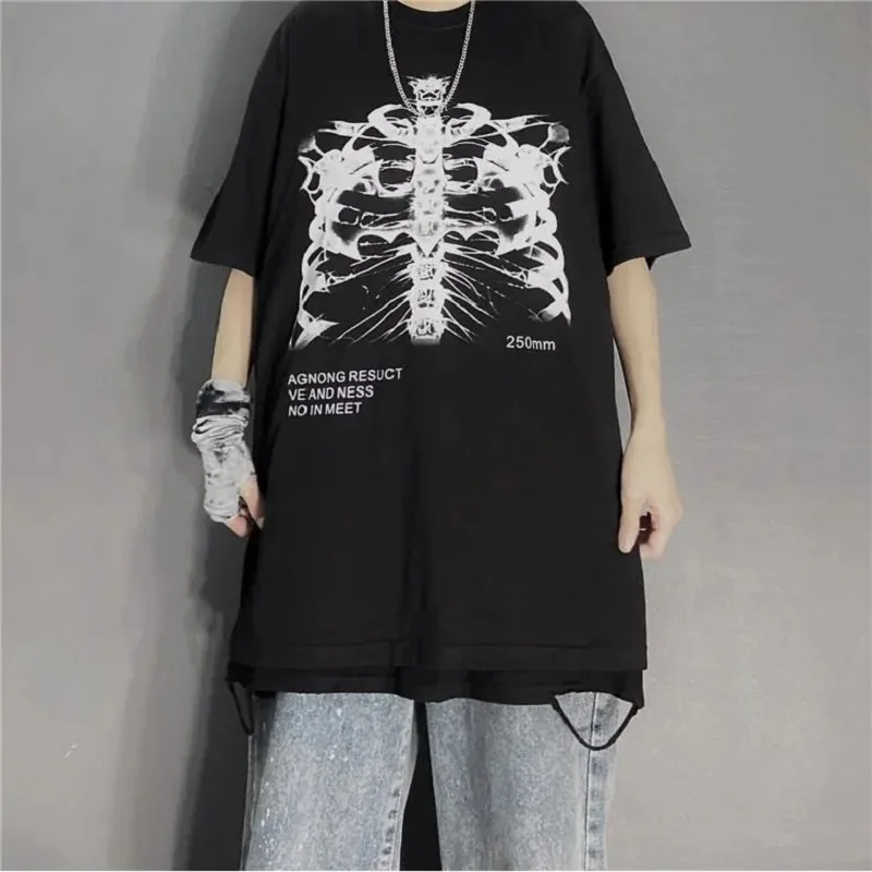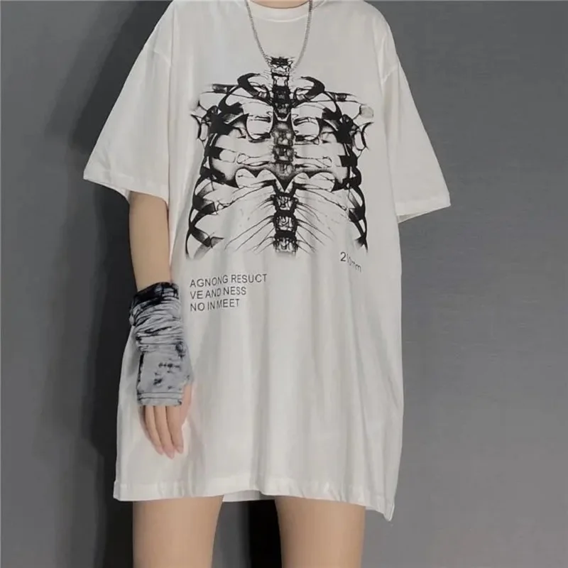 Футболка женская свободного покроя, готический винтажный топ с принтом скелета, хлопковая рубашка в стиле панк, уличная одежда, Y2K