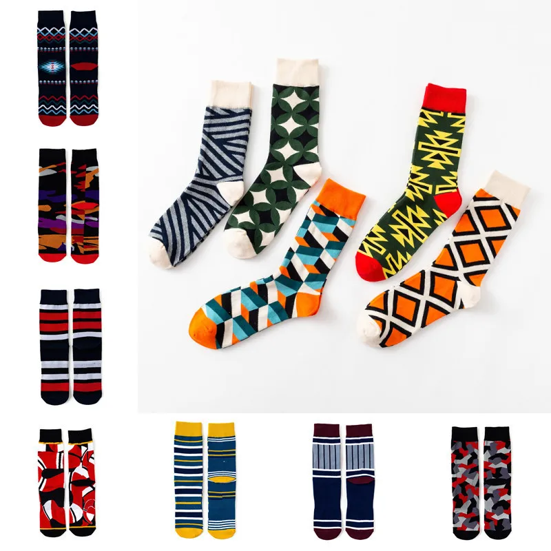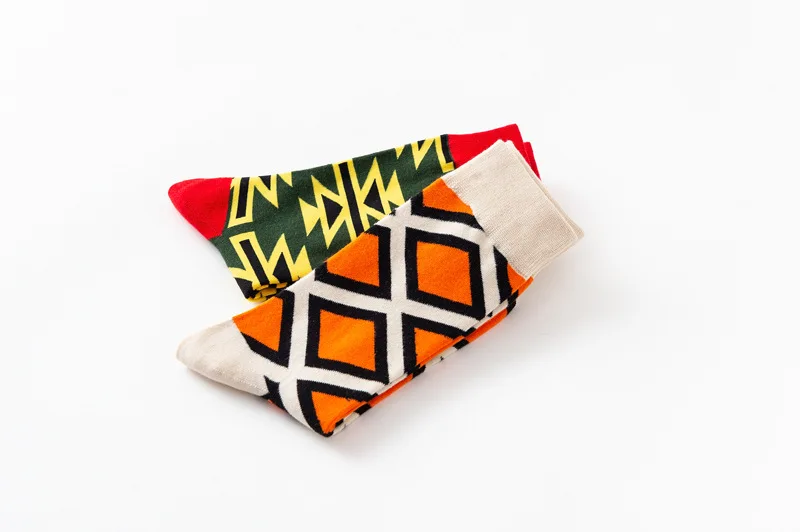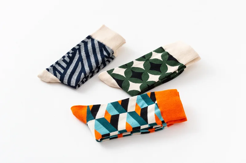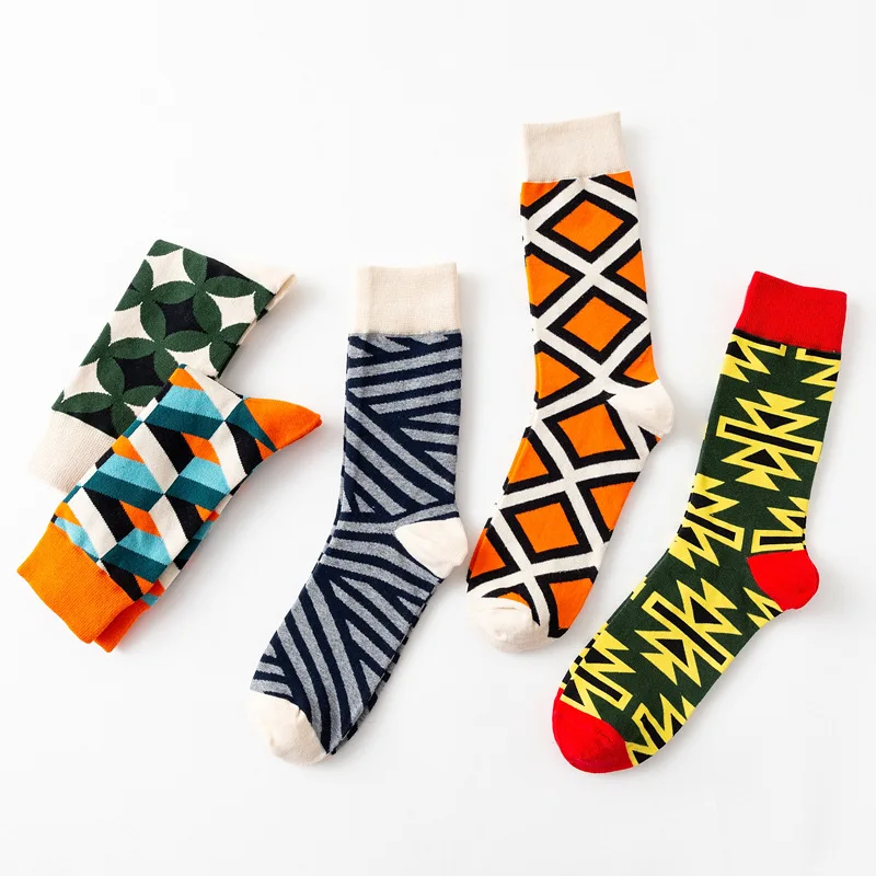 Модные мужские Компрессионные носки унисекс из чесаного хлопка для скейтборда Модные Цветные квадратные Веселые носки с геометрическим рисунком для мужчин