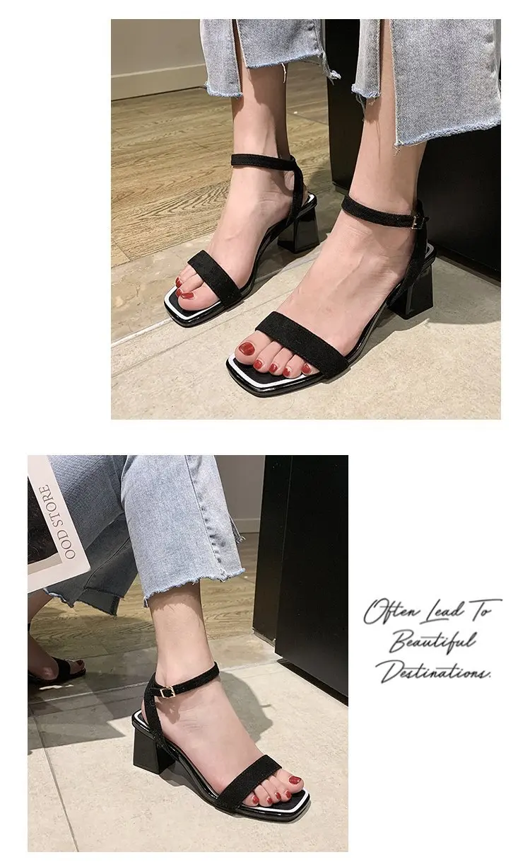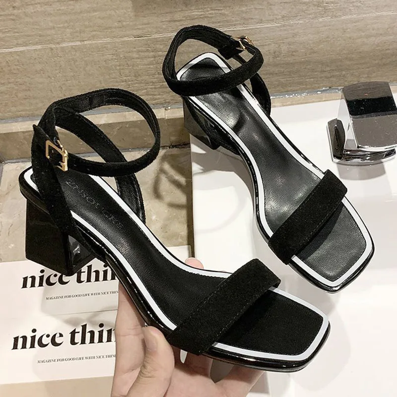 В аккуратном стиле; Сезон лето Женские сандалии-гладиаторы обувь женские туфли-лодочки с ремешком и пряжкой современные босоножки с квадратным носком; Туфли на высоком толстом каблуке; sandalias mujer; 2021
