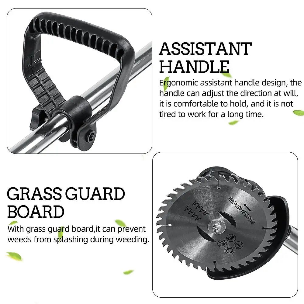 Особенности:-1800 Вт Высокая мощность водонепроницаемая и малошумная головка, легко моется.-Конструкция беспроводной литиевой батареи, низкое энергопотребление и низкий уровень шума.-Благодаря защитной плате для травы, она может предотвратить разбрызгивание WeedSs во время заплетения.-Беспроводной электрический триммер для травы, устраняет беспорядок, вызванный кабелями и шнурами.-Перезаряжаемый. Быстрая зарядка литиевой батареи 21В.-Регулируемый Рабочий угол наклона. С кнопочным переключателем для регулировки.-Вспомогательная ручка для свободной регулировки.-Растягивающийся столб. Регулировка диапазона длины 90-120 см/35,43-47,2 в.-Легко заниматься с иллюминаторами, волнообразной местностью, газонной кромкой, клумбой, под цветочной решеткой и другими зонами.-Косить траву на ровном грунте, быстро обрезать траву на газоне, с гибким углом, и быстро подрезать Наклонный стог сена.-Специальный забор для защиты растений может эффективно предотвратить травмирование цветочной детской, а специальная перегородка может эффективно предотвратить разбрызгивание травы.-Переключатель двойного управления, два переключателя необходимо запускать одновременно нажатием на нижнюю часть, что безопаснее для предотвращения случайного прикосновения.-Эргономичная конструкция ручки-помощника, ручка может регулировать направление по желанию, ее удобно держать, и она не устает долго работать.-Область применения: стрижка газона, удаление сорняков, Подрезка растений в садоводстве и т. Д.