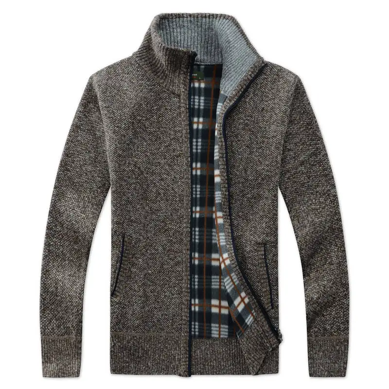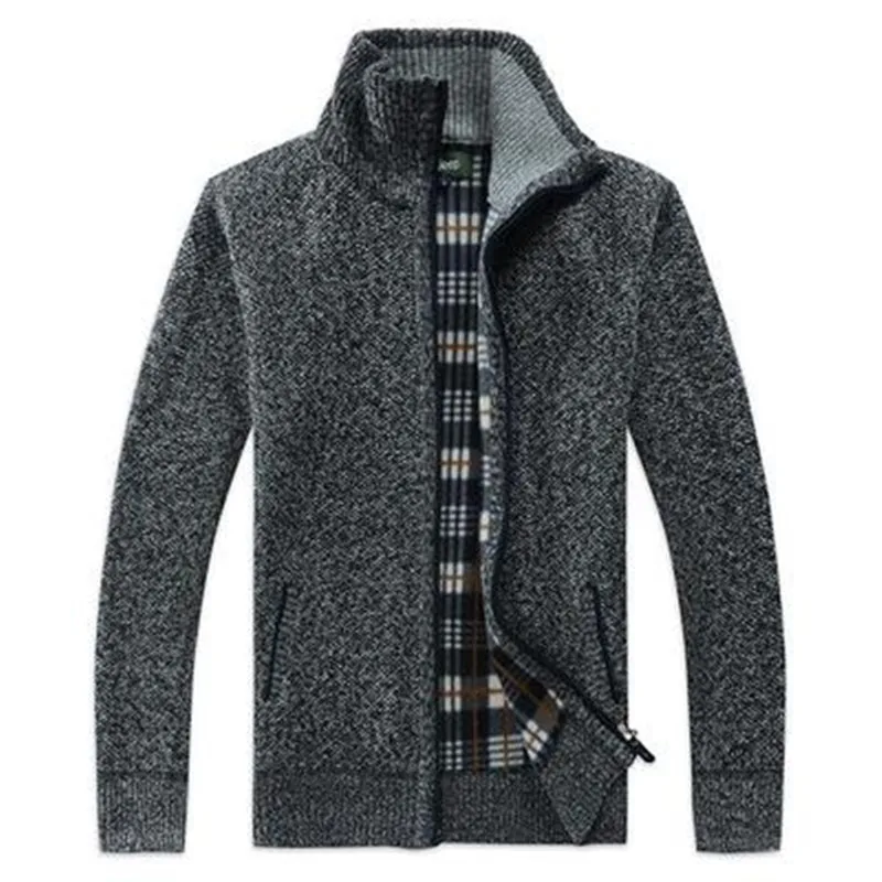 Мужской свободный шерстяной свитер, трикотажный кардиган на молнии с искусственным мехом, теплая красивая куртка для отдыха на осень и зиму