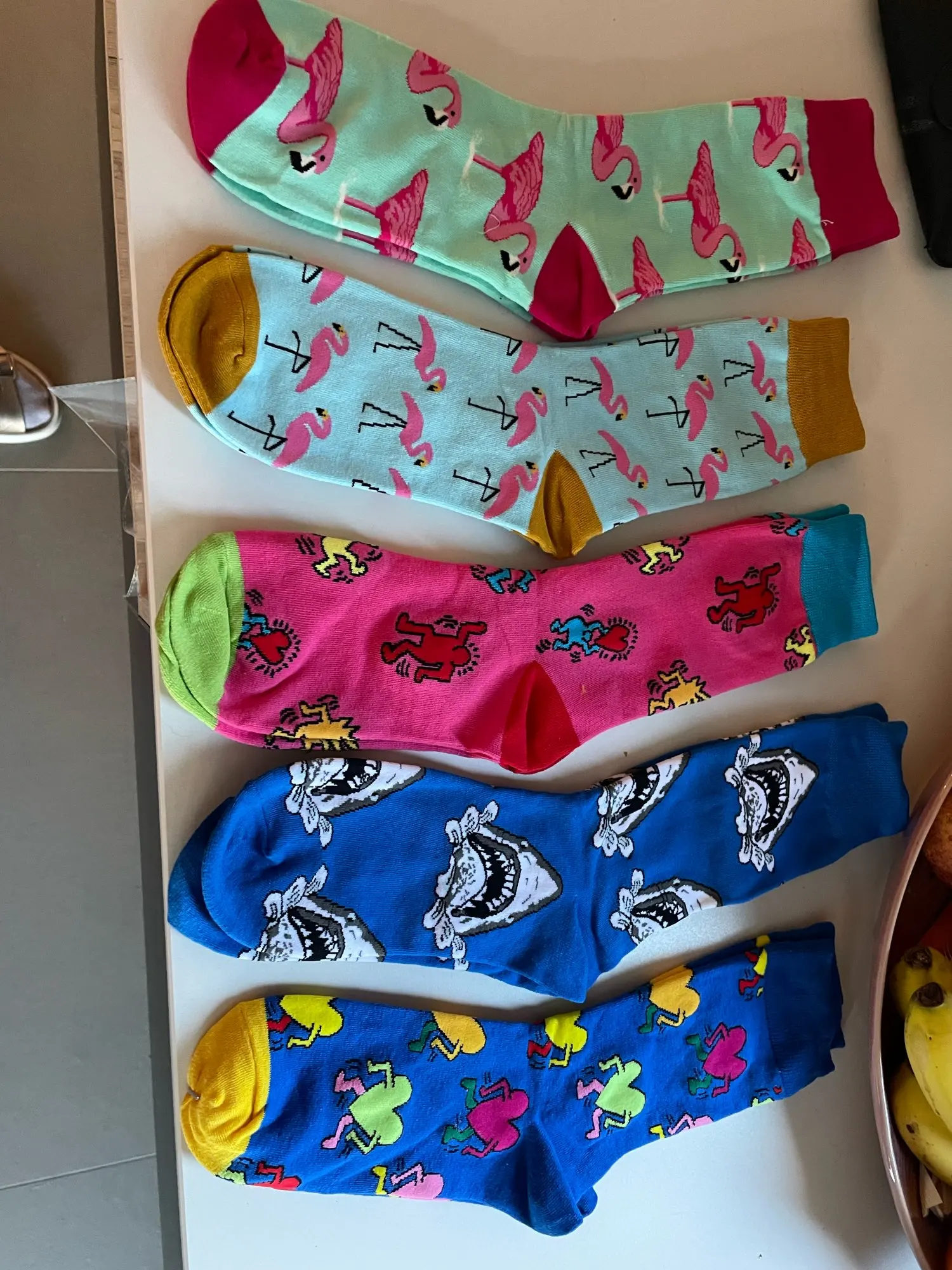 Я купил эти носки в нескольких экземплярах, чтобы сделать подарки. Они прибыли довольно быстро во Францию метропиолитана, но рисунок очень уродливый Они хорошего качества, похожи на то, что можно найти в H & M Мне не нужно было связываться с продавцом