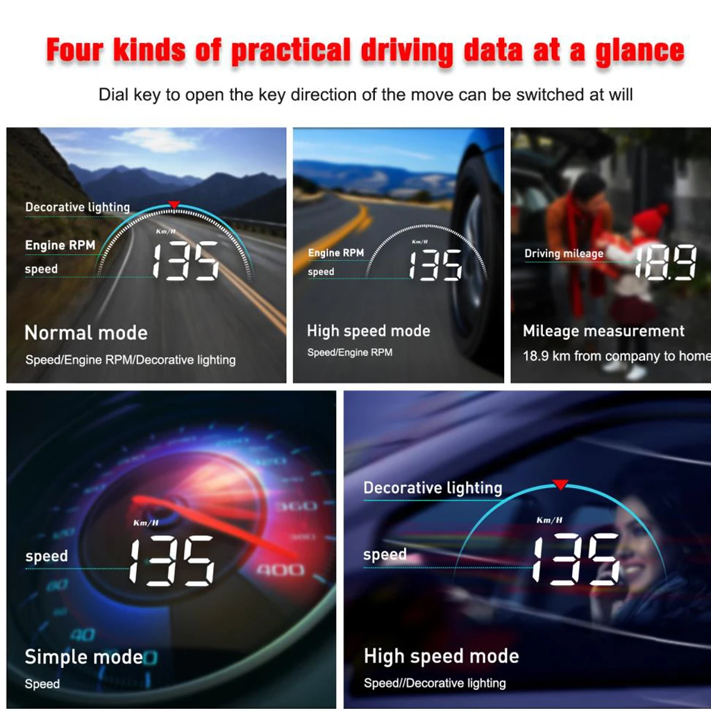 Богатый дисплей данных: скорость вождения/об/мин/Температура бака/напряжение батареи/пробег/автоматическое включение питания, км/ч и mph переключение
