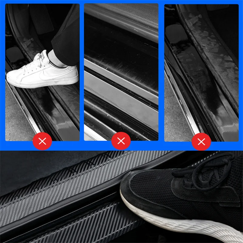 4 шт. Автомобильная наклейка на порог из углеродного волокна для JE...