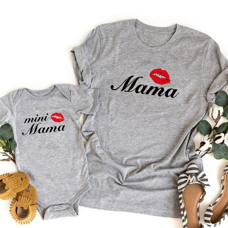 Модная семейная мини-футболка для мамы, одежда для мамы, мама и я, семейные одинаковые наряды с красными губами, одежда для мамы и дочки