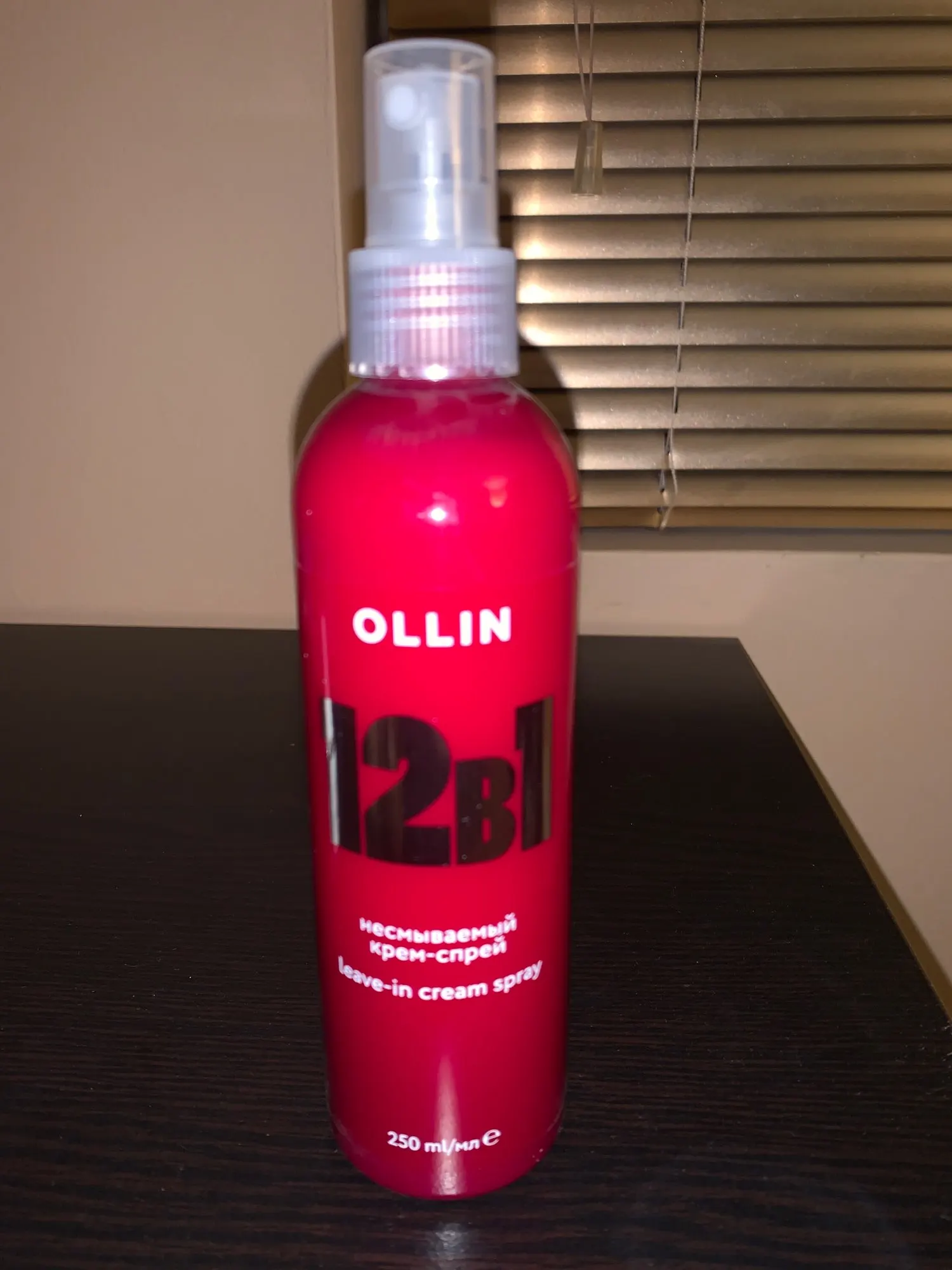 Несмываемый многофункциональный крем-спрей 12 в 1 OLLIN, 250мл❗✔️ Заказывала с купоном за 321₽. Доставка в ПВЗ - 3 дня. Срок годности: 36мес. Заявленный производителем функционал продукта: ✔️увлажняет сухие и ломкие волосы, ✔️облегчает расчесывание, ✔️разглаживает поврежденную структуру, насыщая кератином, ✔️придает глянцевый блеск, ✔️защищает цвет окрашенных волос, ✔️обладает термозащитными свойствами, ✔️снимает антистатический эффект, ✔️облегчает укладку даже жёстких волос. Консистенция густая, но легче, чем 15 в 1. НЕ ЛИПКИЙ! НЕ УТЯЖЕЛЯЕТ ВОЛОСЫ! АРОМАТ БАНАНОВЫЙ! После применения спрея наблюдаем разглаживание, заметный блеск, послушность волос, воздушный /подвижный объём без спутывания волос! Нет жирности и сосулек. Отсутствует статический эффект. Способ применения: Нанесите крем-спрей на чистые волосы в необходимом количестве (в зависимости от длины, состояния и пористости). Распределите продукт по всей длине, включая кончики. Далее, не смывая, приступайте к укладке.
