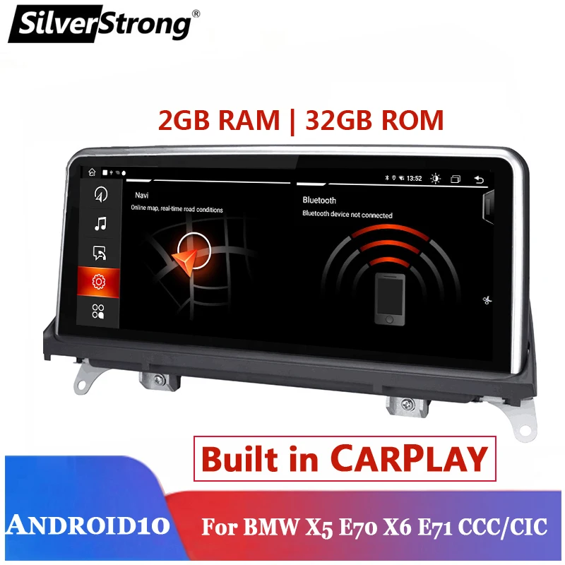 Автомагнитола SilverStrong, мультимедийный проигрыватель на Android 10,0 для BMW X5 E70 X6 E71 2007-2013, GPS, стерео, 2 DIN, DVD-экран