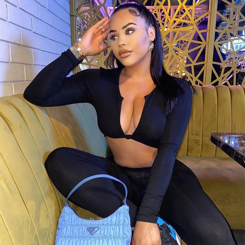 Спортивный костюм Y2k женский из 2 предметов, повседневный розовый комплект с укороченным топом и леггинсами с длинным рукавом, городские джоггеры, спортивный костюм