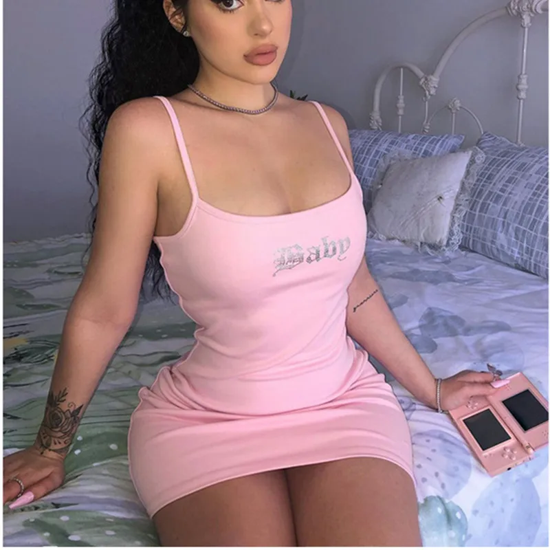 Женские сексуальные платья на бретельках с U-образным вырезом без рукавов облегающая Клубная одежда с принтом со стразами и надписью для женщин