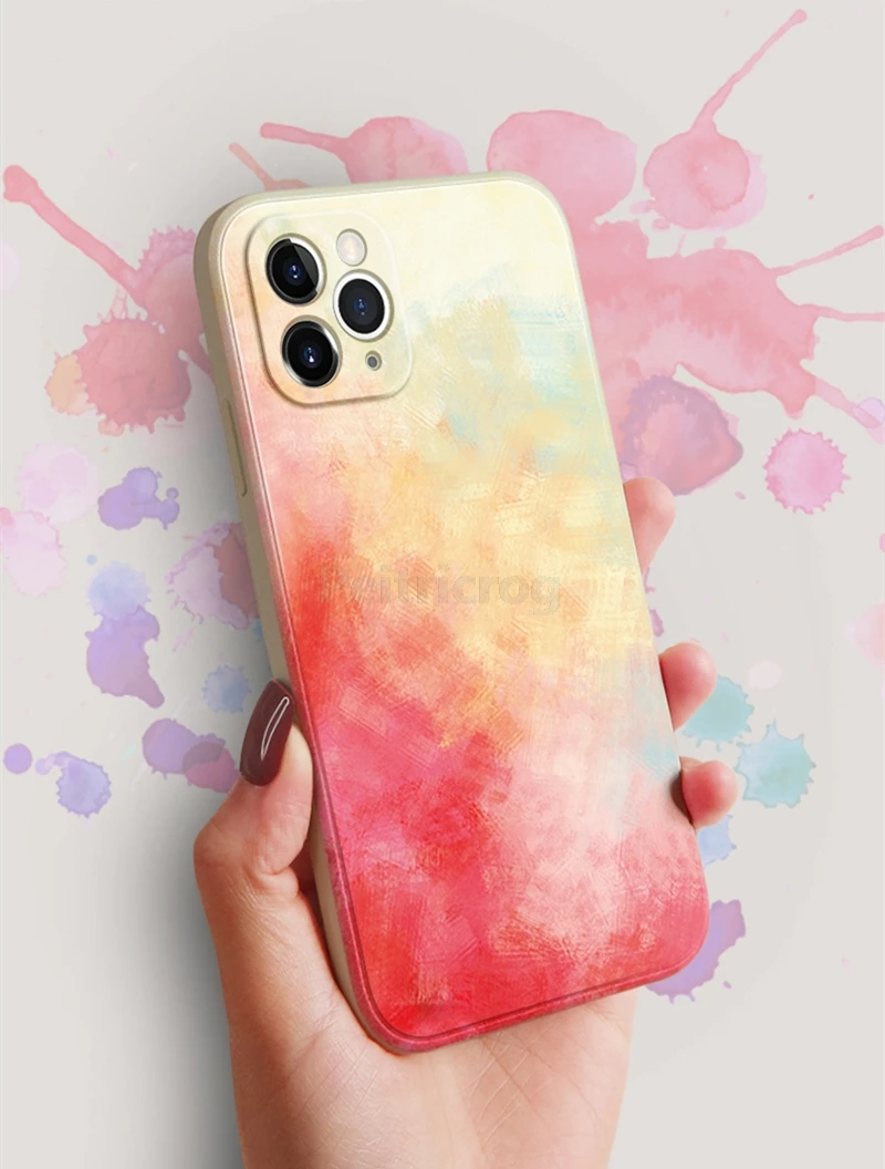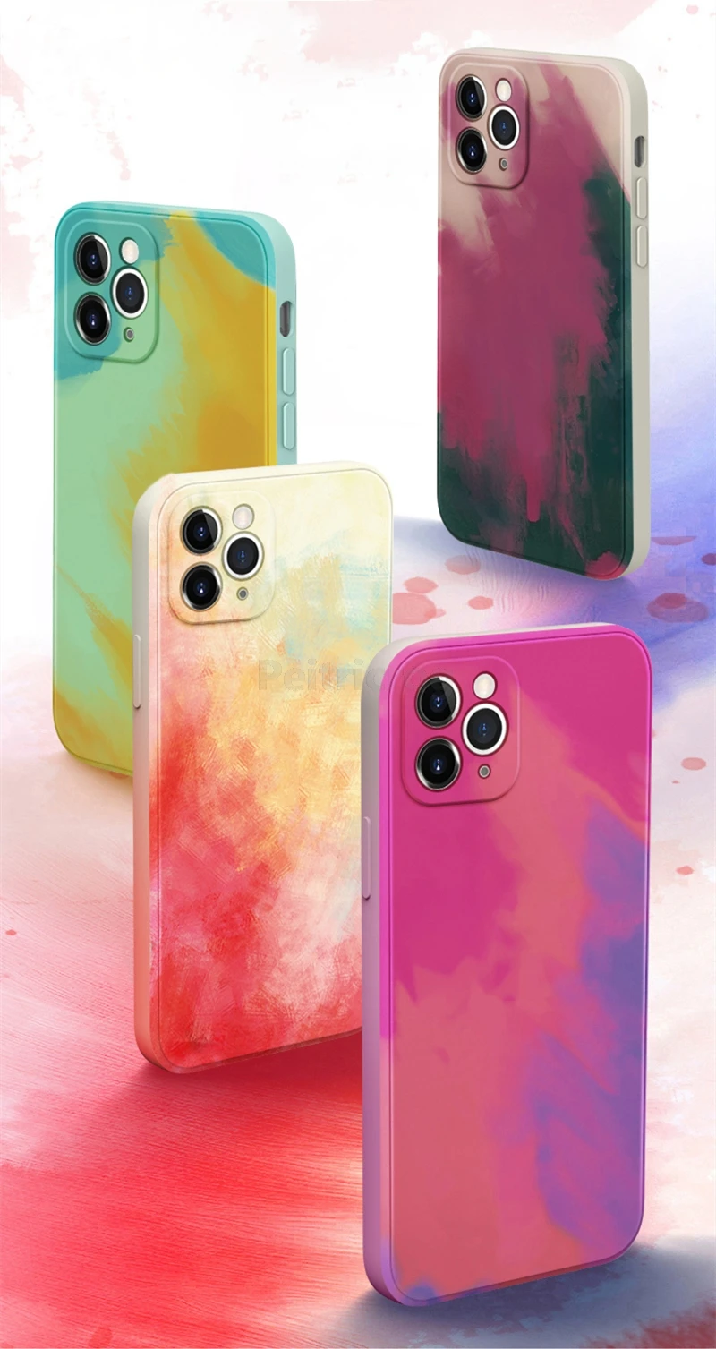 Роскошный цветной чехол из жидкого силикона для iPhone 12 Mini 11 Pro Max X XR XS 8 7 Plus SE2020, акварельный Мягкий защитный чехол