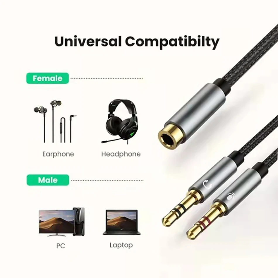 Aux-кабели для наушников с разъемом 3,5 мм, разъем 3,5 мм на 2 штекера, аудио Y-образный разветвитель для телефона, компьютера, ПК, адаптер, удлинитель, кабель