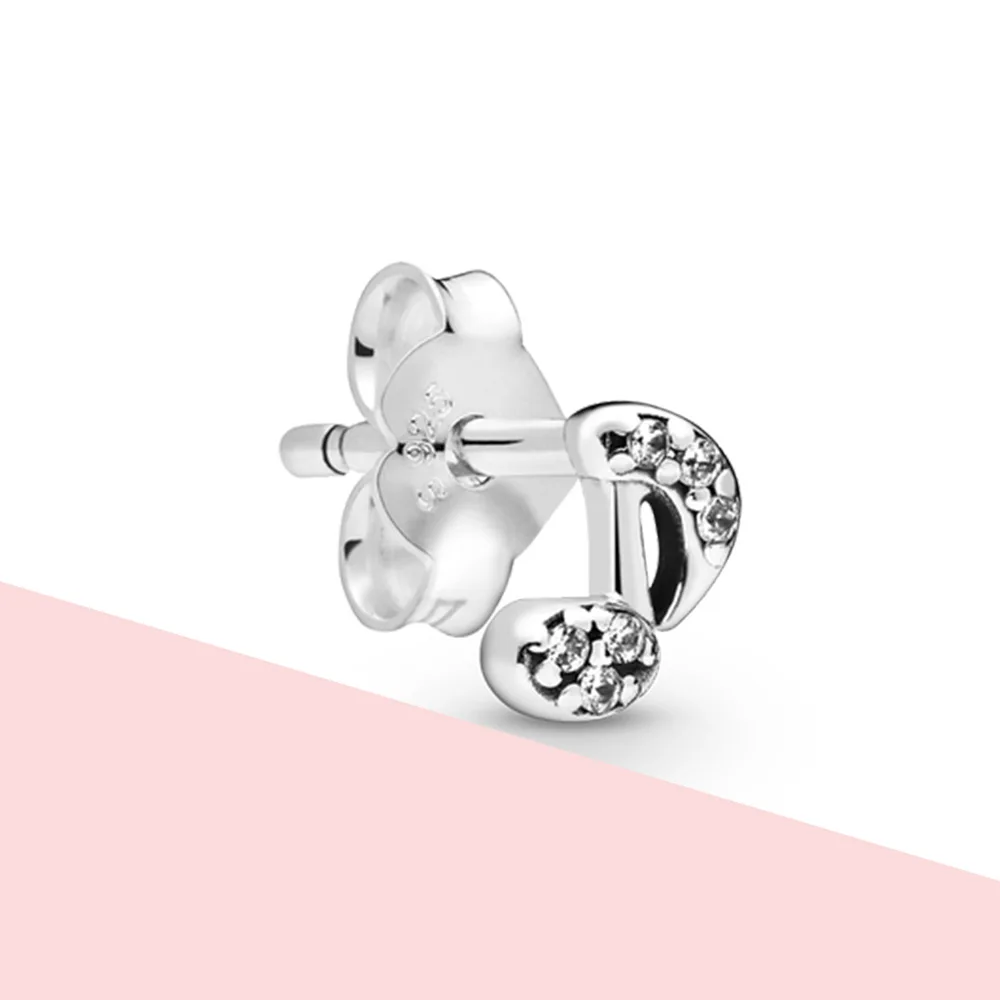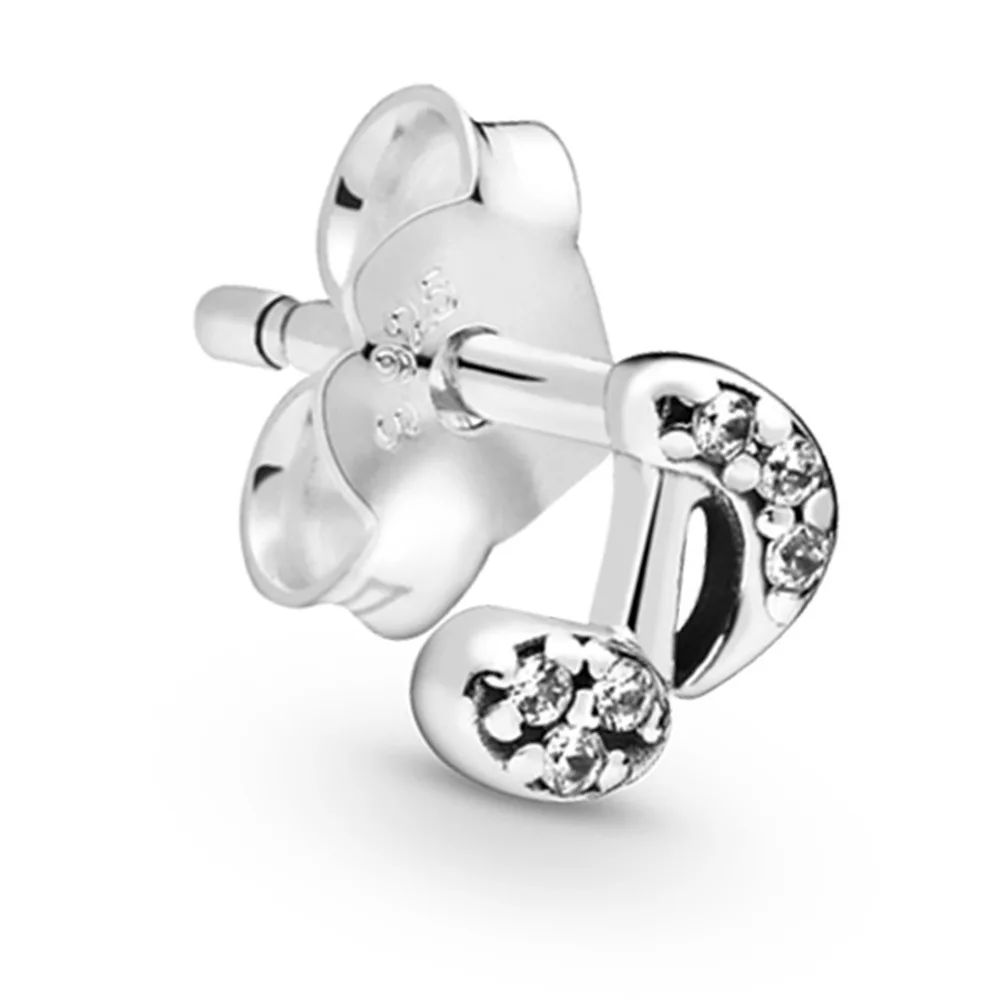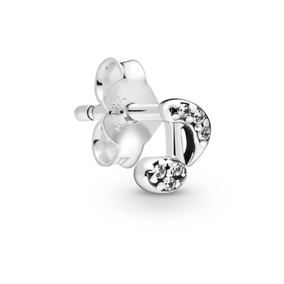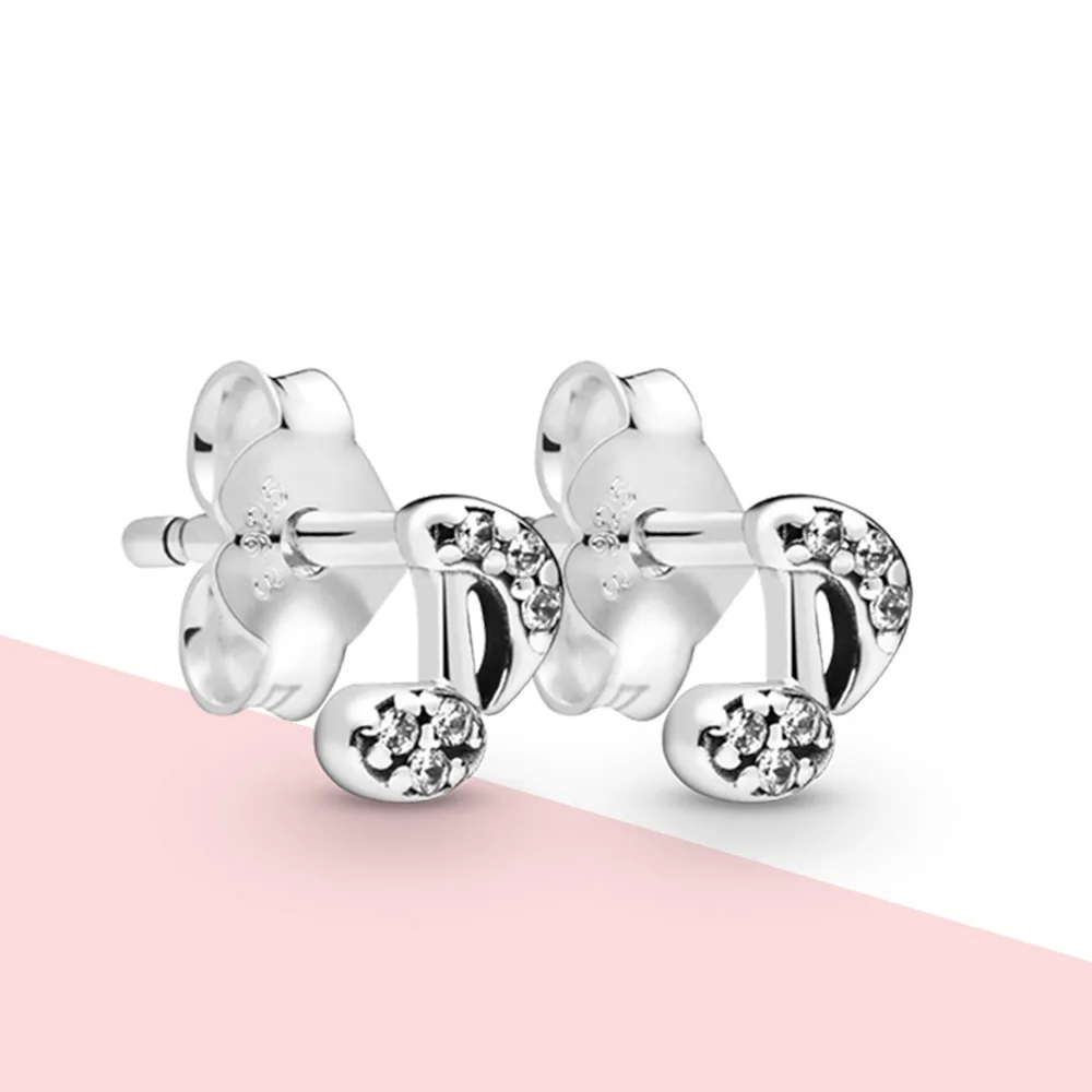 Реальные 925 стерлингового серебра оригинальный мне мой музыкальная нота серьги-гвоздики с украшением в виде кристаллов для женщин 925 стерлингового серебра серьги