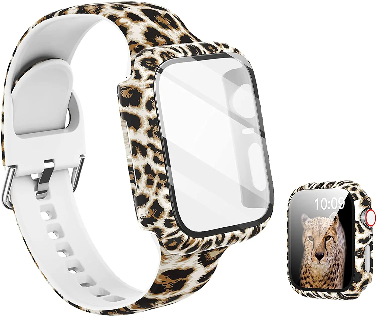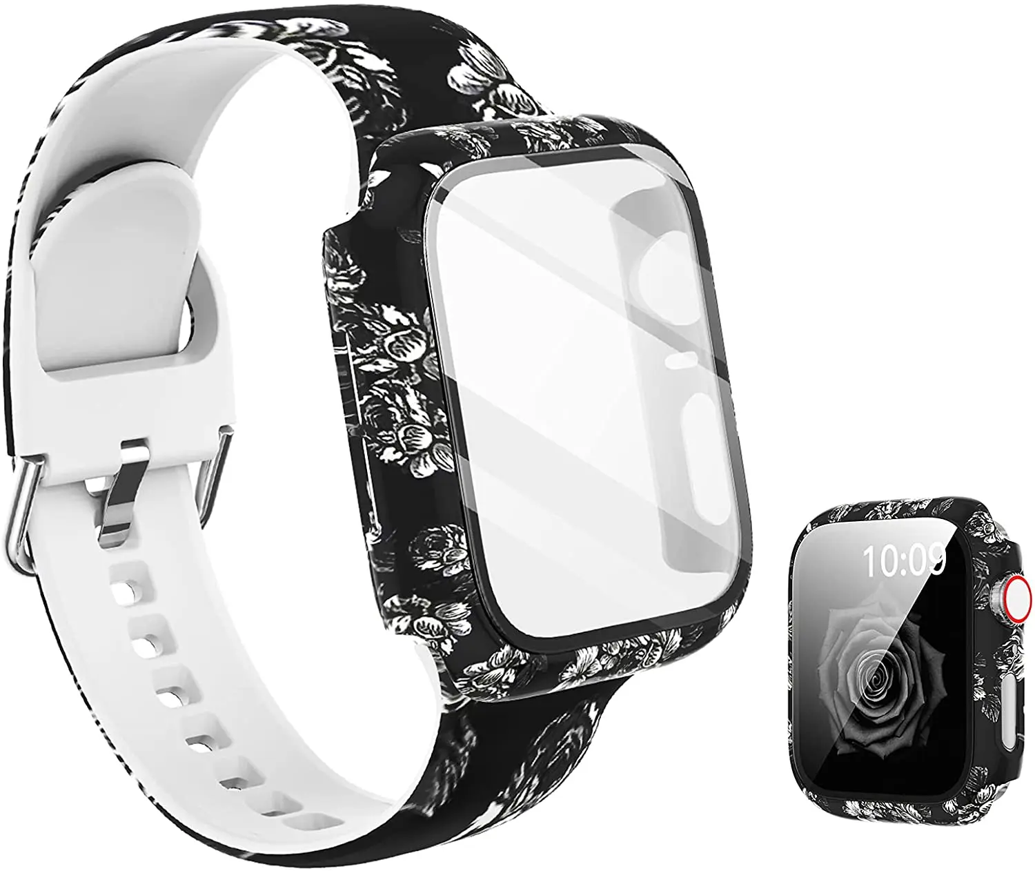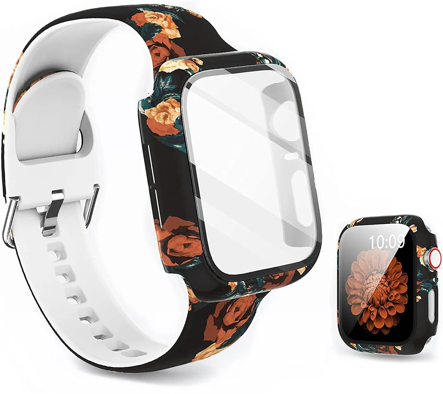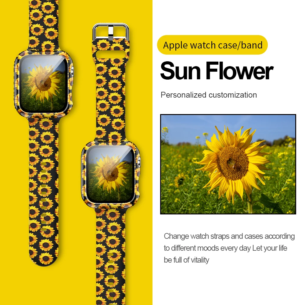 Силиконовый ремешок + крышка для Apple Watch Bands 44 мм 40 мм 42 мм 38 мм, защита для экрана, стекло + Силиконовый ремешок для iwatch 2 в 1