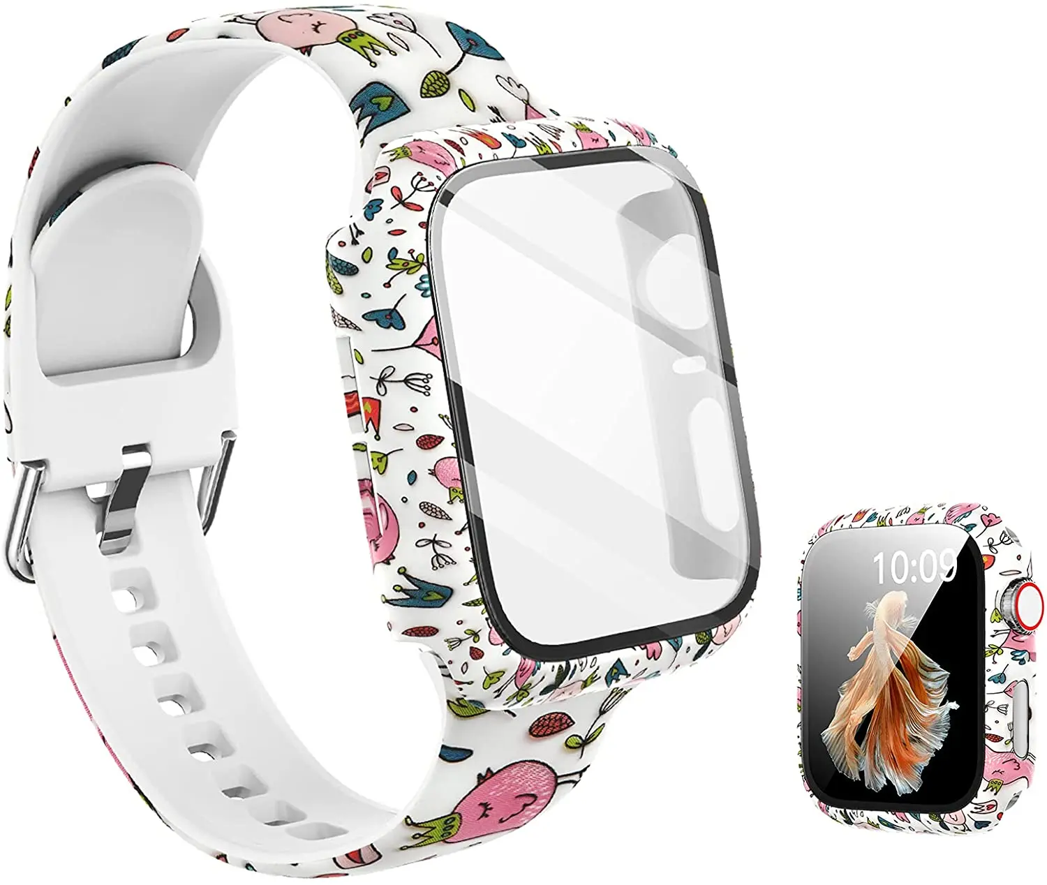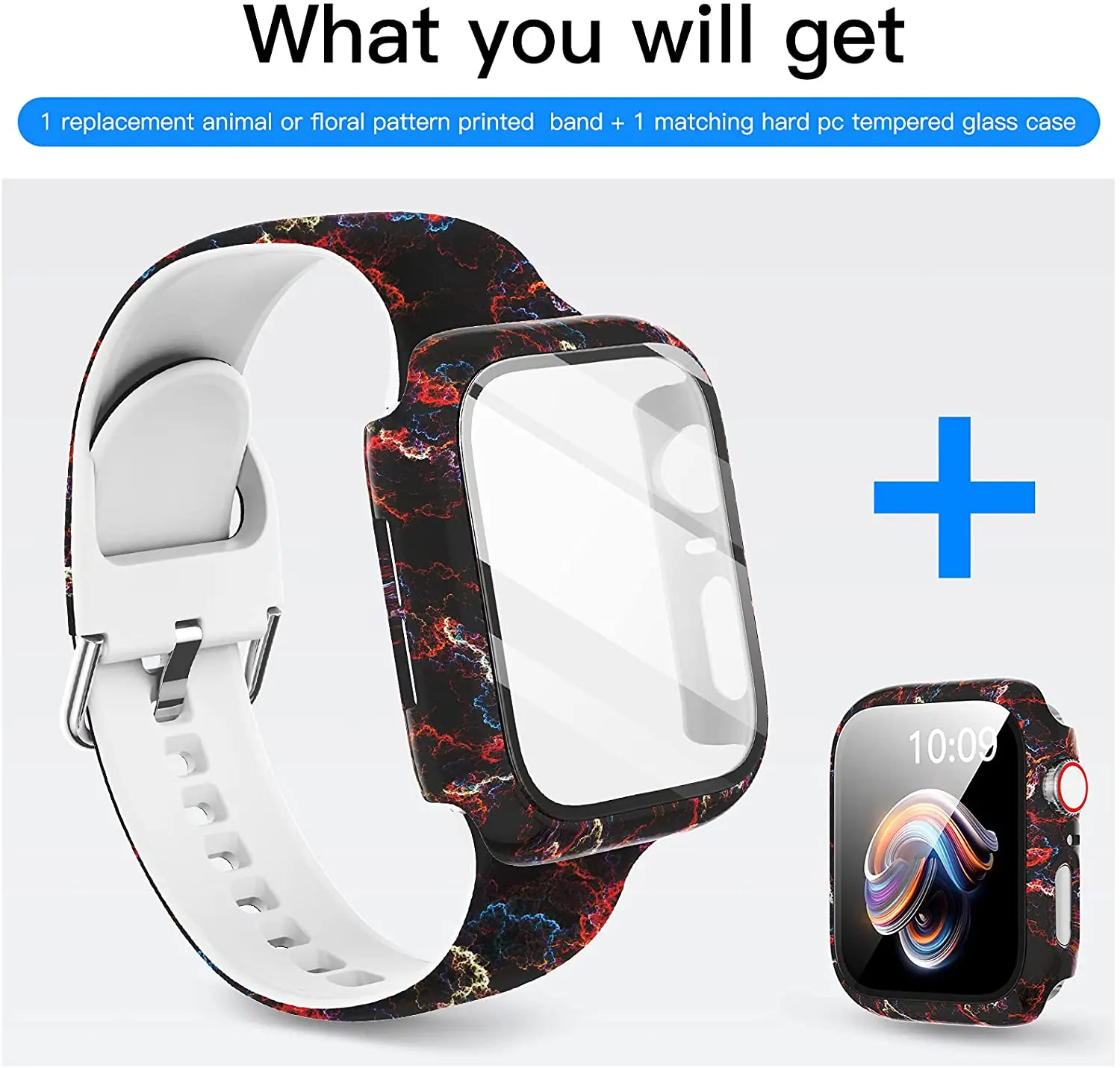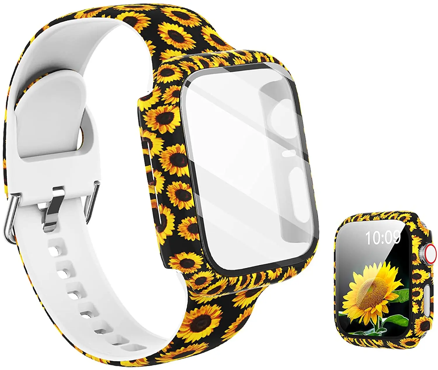 Силиконовый ремешок + крышка для Apple Watch Bands 44 мм 40 мм 42 мм 38 мм, защита для экрана, стекло + Силиконовый ремешок для iwatch 2 в 1