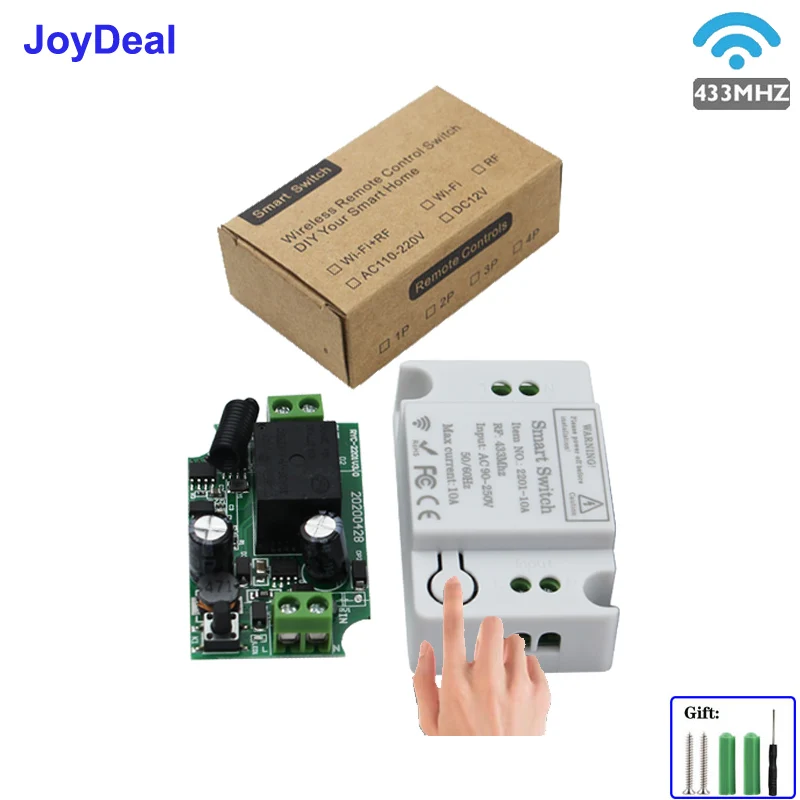 Универсальный светильник ель света JoyDeal, 433 МГц, умный контроллер для лампысветодиодов, 110 В переменного тока, 220 В, плата релейного приемника RF и кнопочный переключатель
