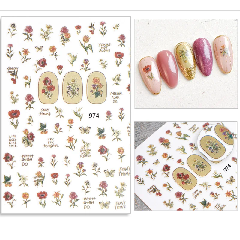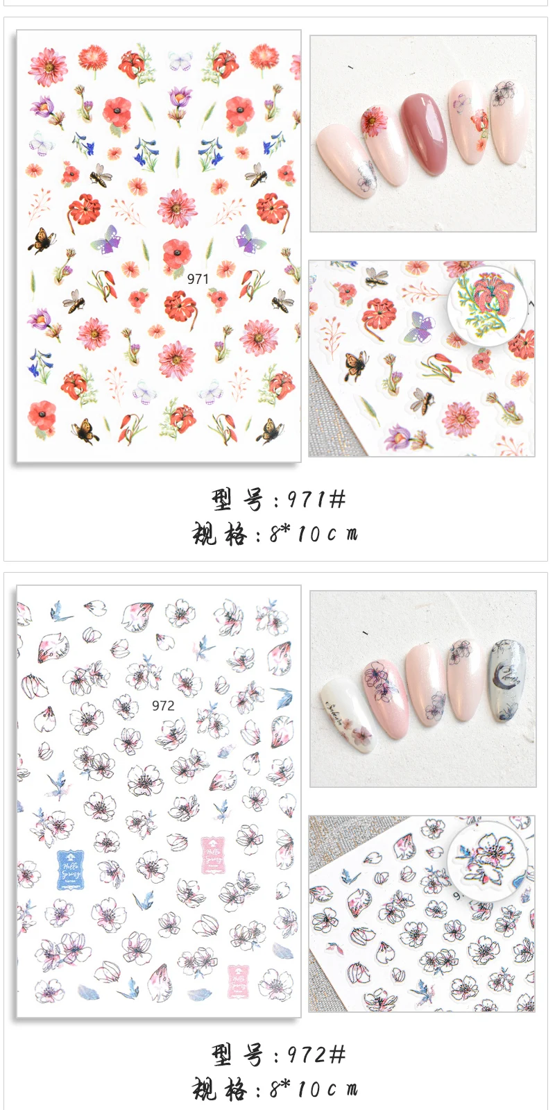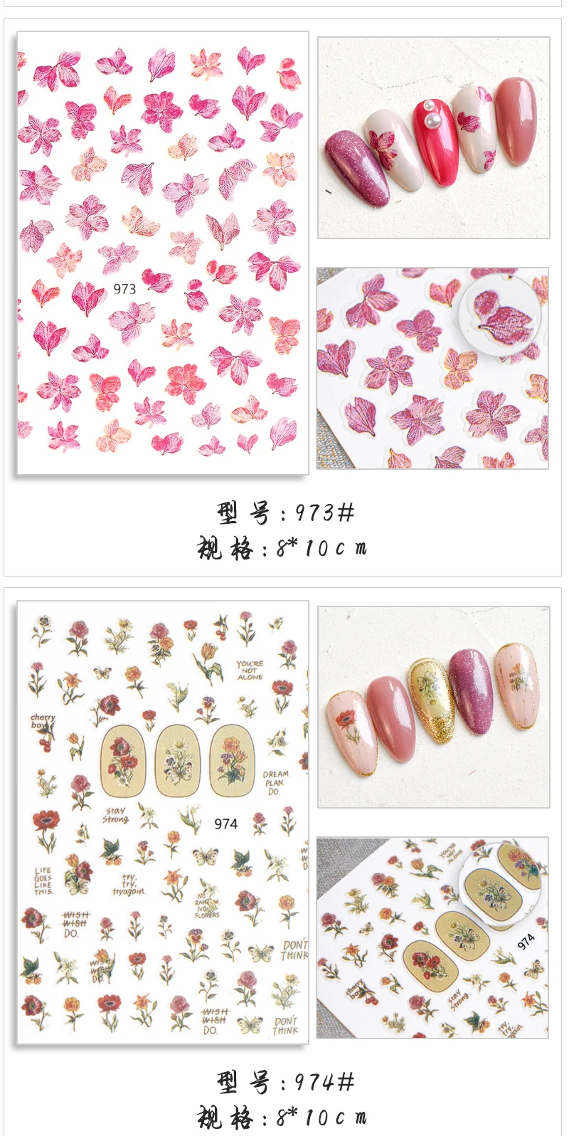 Засушенные цветы TSZS, самоклеящиеся наклейки для ногтей, наклейки с цветами, акриловые наклейки для ногтей