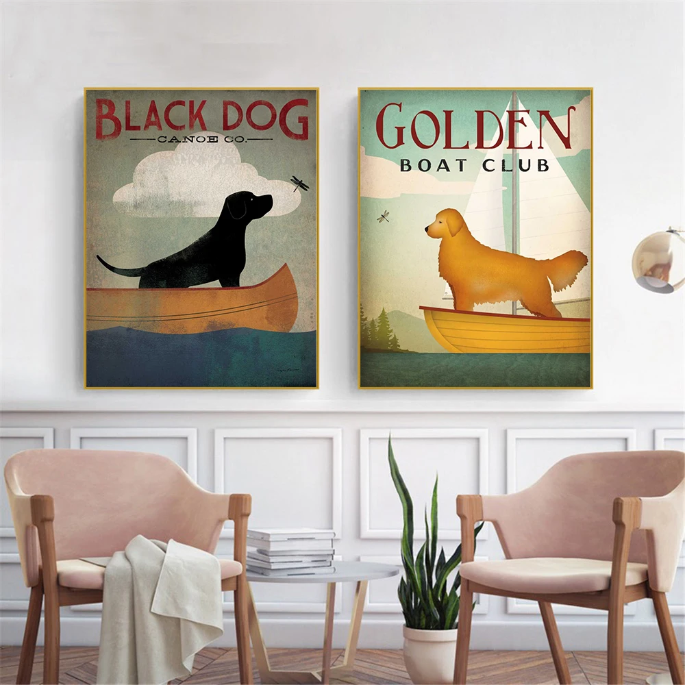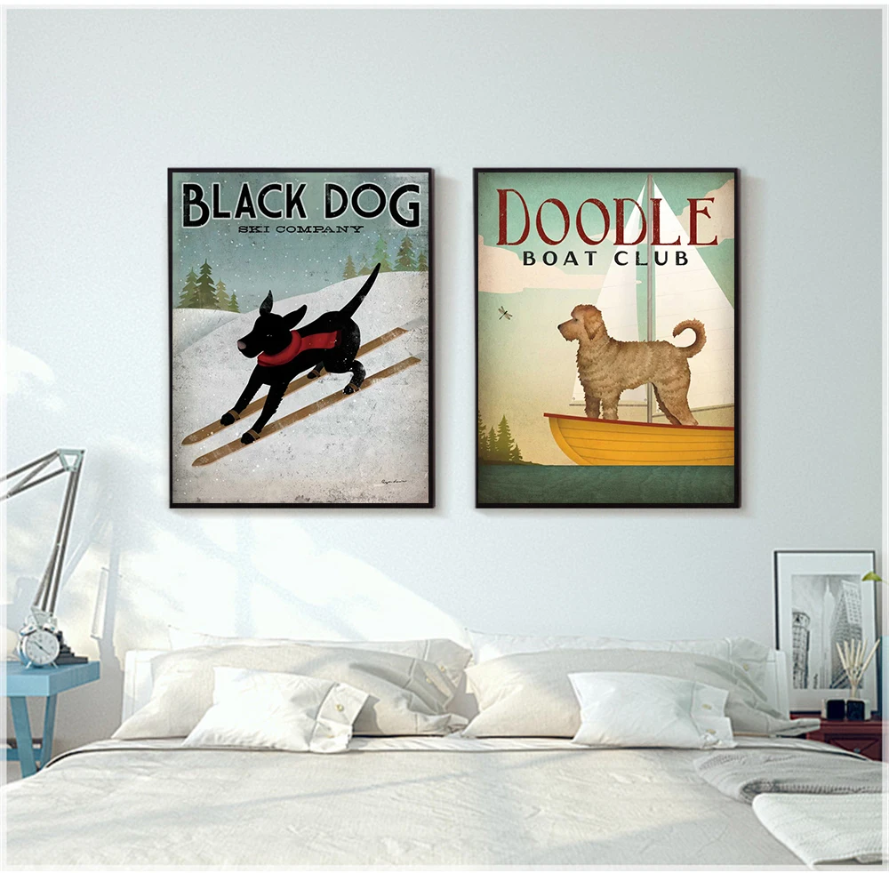 Абстрактная живопись на холсте, черная собака, катание на лыжах, Желтая Собака, Настенная картина, лодка на стену, картины для гостиной, Декор