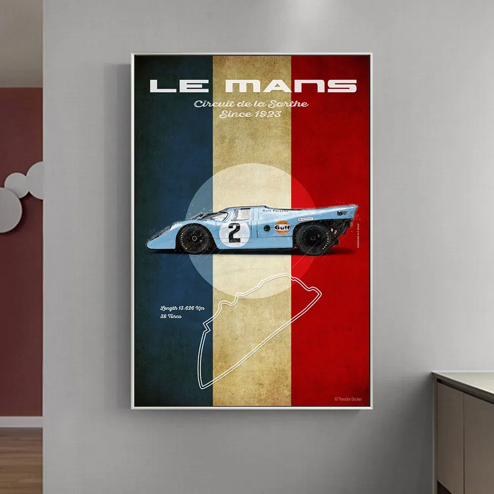 Оригинальный постер Le Mans 24 часа и принты гоночный автомобиль, холст, живопись, настенный художественный постер, картина для гостиной, украшение для дома