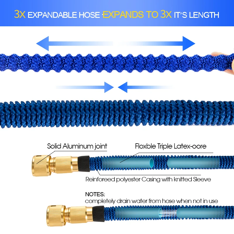 Название продукта: садовый водный шлангМатериал: шланг: трехслойная Толстая TPE внутренняя трубка + алюминиевое соединение + полиэфирная оплеткаПистолет: алюминиевый сплавВыдвижная Длина:25 футов = (7,5 м после впрыска воды), оригинальная Длина: 2,5 м50 футов = (15 м после впрыска воды), оригинальная Длина: 5 м75 футов = (22,5 м после впрыска воды), оригинальная длина: 7,5 м100 футов = (30 м после впрыска воды), оригинальная Длина: 10 м125 футов = (37,5 м после впрыска воды), оригинальная Длина: 12,5 М150 футов = (45 м после впрыска воды), оригинальная Длина: 15 мПримечания:1: 5 м, 7,5 м, 15 м, 22,5 м, возможностью погружения на глубину до 30 м, для использования на глубине до 45 м являются Длина aftering впрыска воды Max Длина