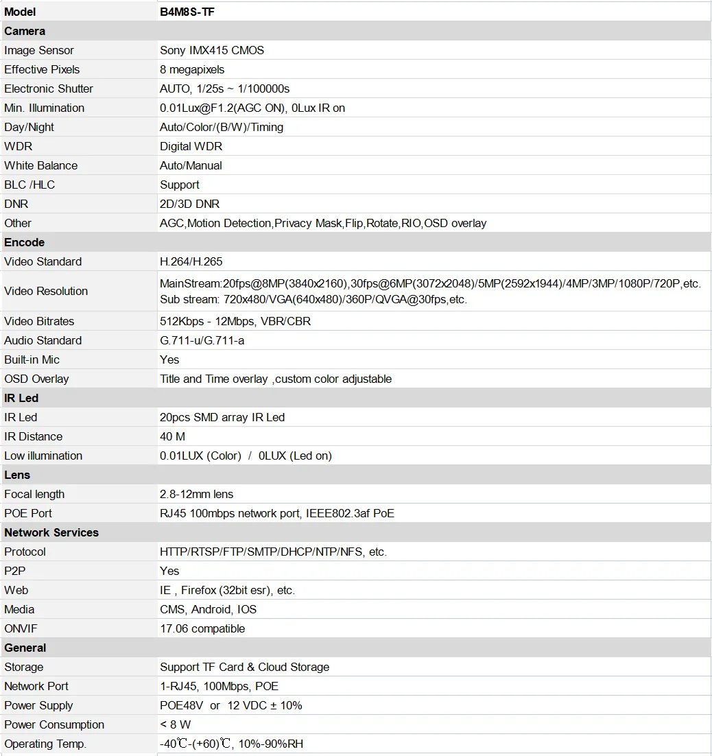 Новейший датчик SONY IMX415 приносит вам максимальный опыт 4KИ захватывает больше деталей, особенно в низкий светильник